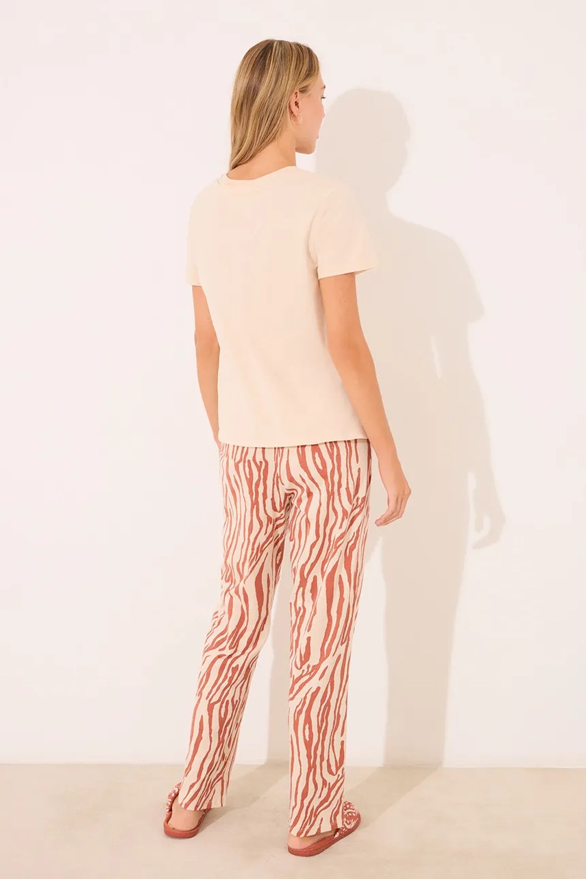 - Better Cotton Initiative. Produkty, oznaczone tym znakiem, zawierają przynajmniej 50% bawełny pochodzącej od sprzedawcy lub marki, należącej do inicjatywy Better Cotton oraz inwestującej w rozwój BCI. - Prosty, nie blokujący ruchów fason. - W skład piżamy wchodzi t-shirt i spodnie. - Klasyczny, okrągły dekolt. - W pasie elastyczna listwa z troczkami.