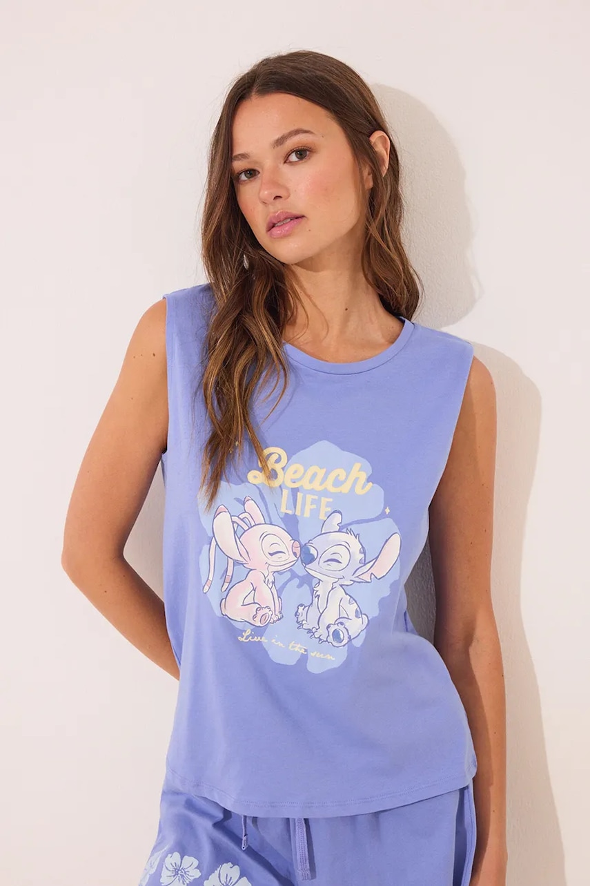 - Luźny krój zapewniający pełną swobodę ruchów. - Klasyczny, okrągły dekolt. - Elastyczna listwa w pasie. - W pasie troczki. - Model z nadrukiem.