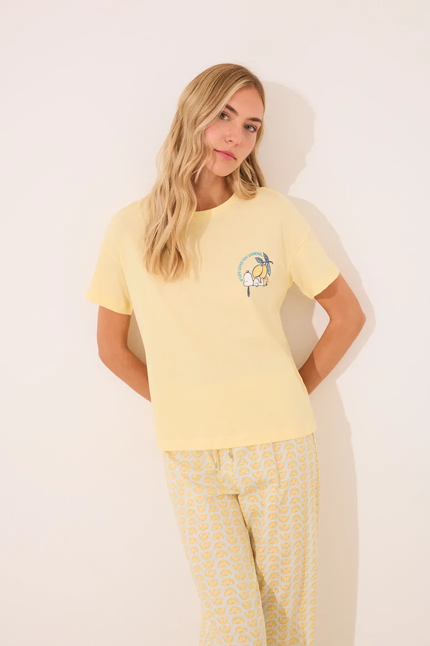 women'secret piżama damska kolor żółty bawełniana 3132106