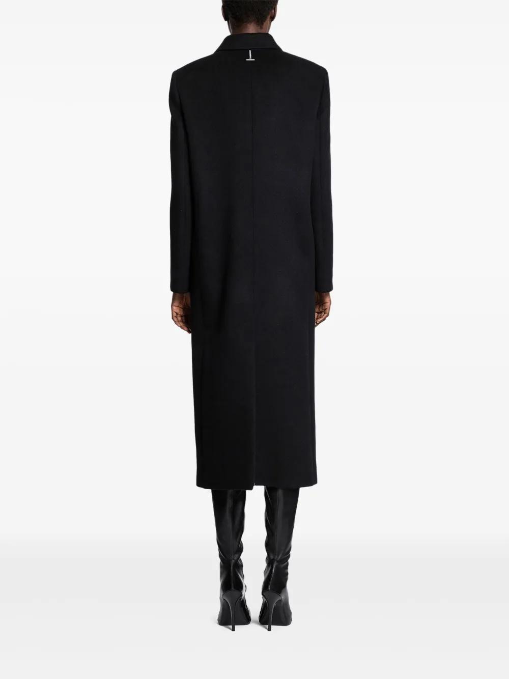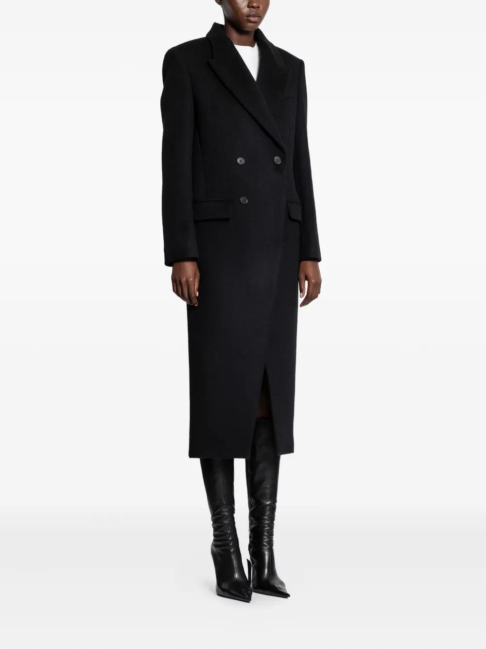 black wool double-breasted felt texture button fastening front flap pockets rear vent