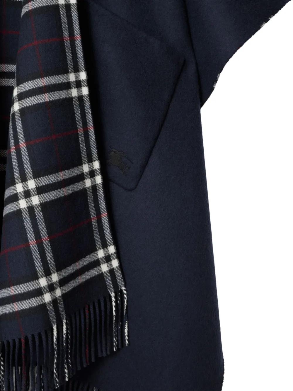 dark blue wool-cashmere blend Check pattern fringed hem reversible