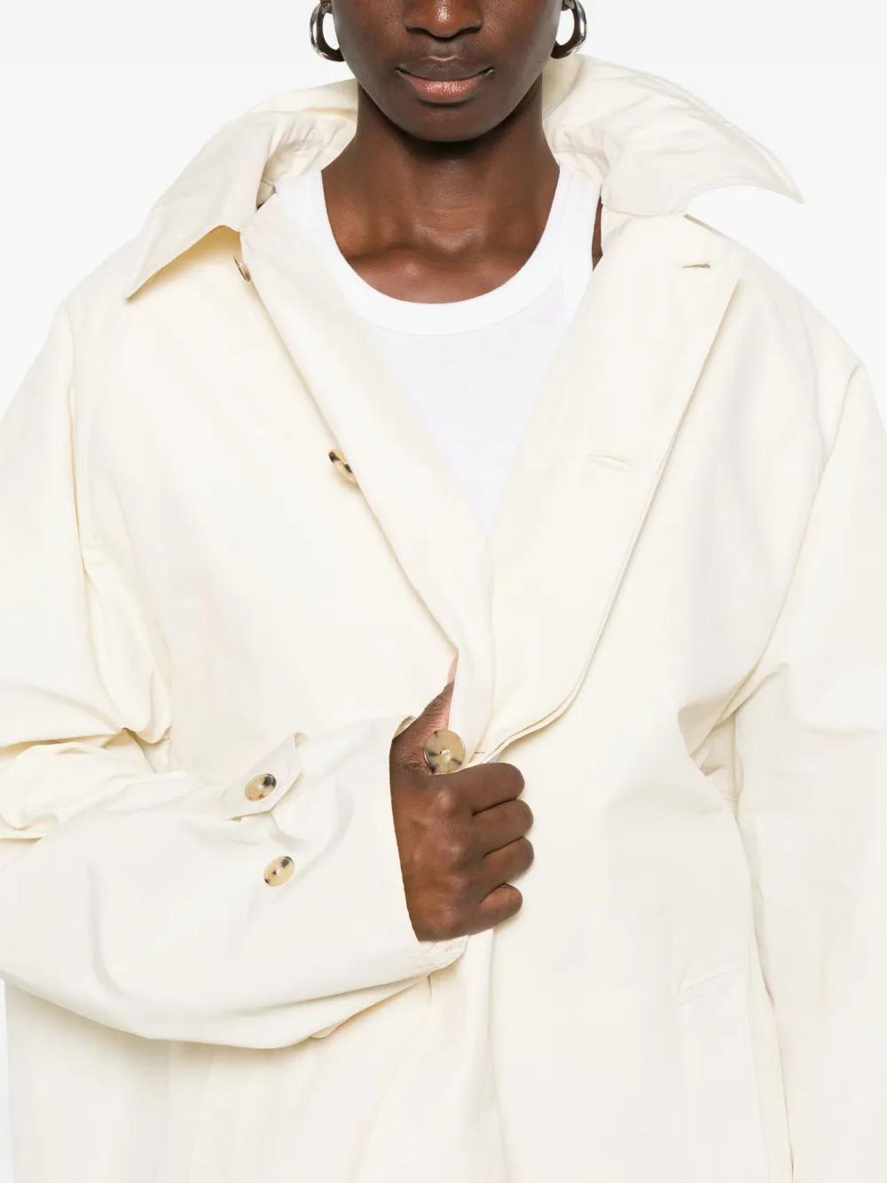 ivory belted waist front button fastening long sleeves buttoned cuffs classic collar