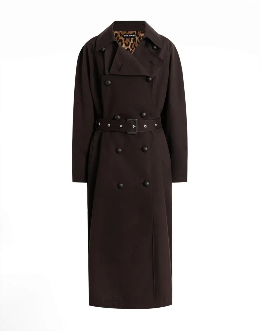 dark brown double-breasted fastening belted waist long sleeves buttoned cuffs