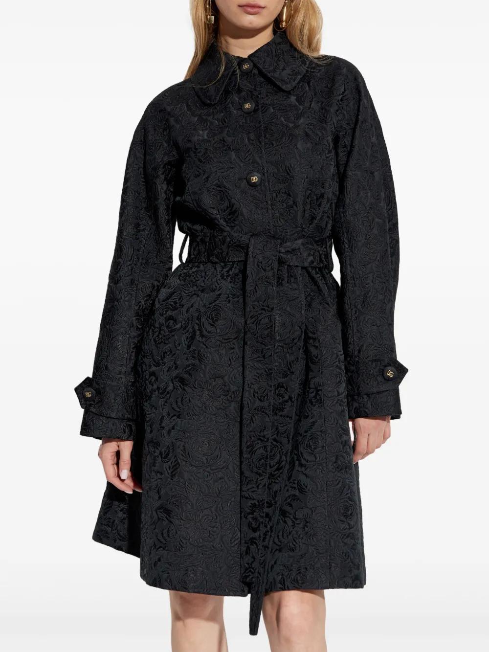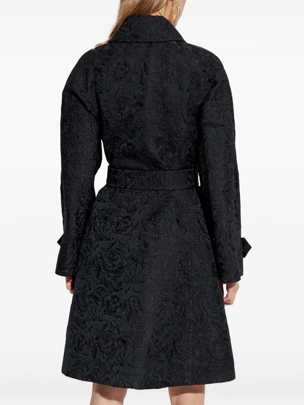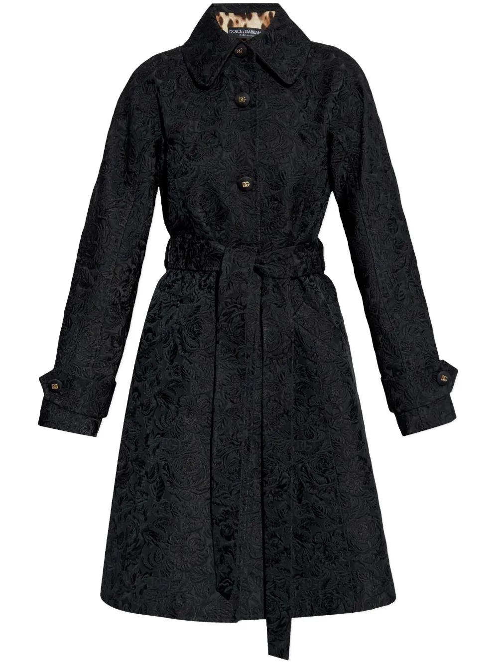 black front button fastening belted waist two side welt pockets buttoned cuffs