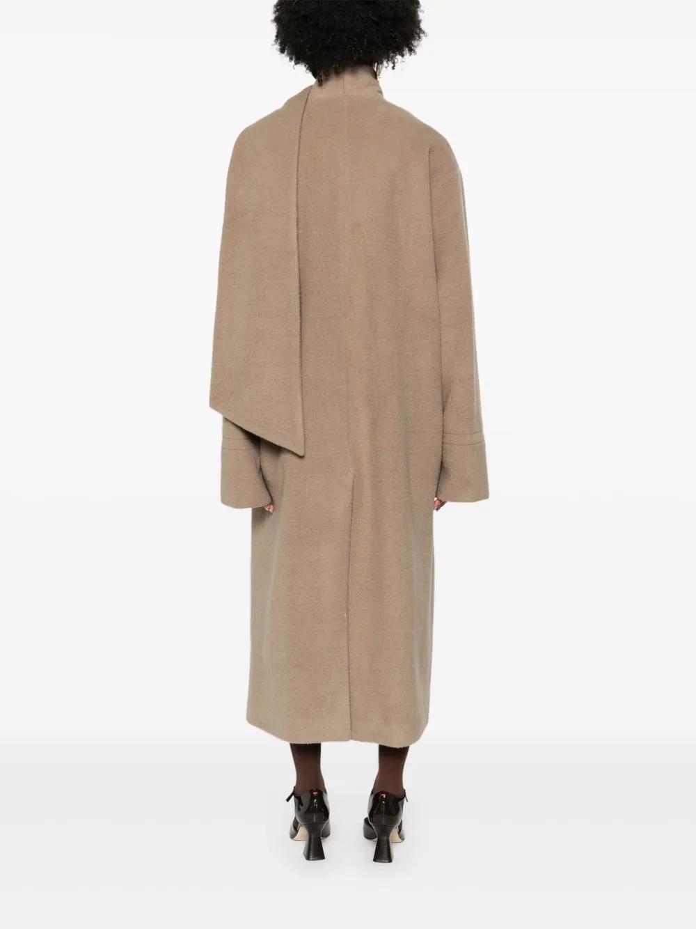 beige attached scarf button fastening flap pockets long sleeves wide cuffs