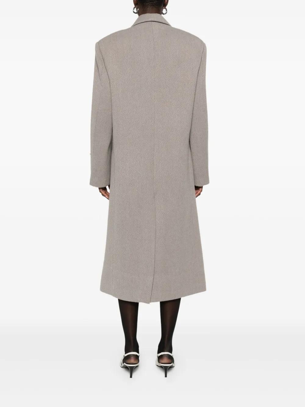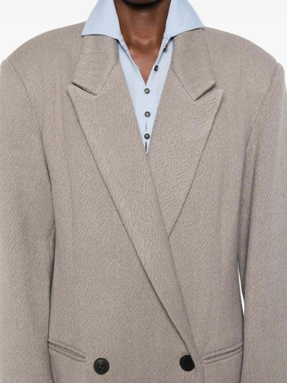 grey double-breasted notched lapel button fastening long sleeves welt pockets