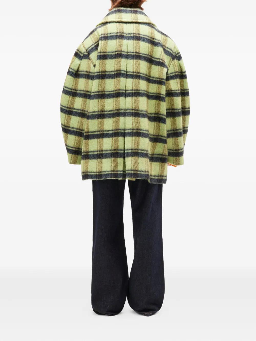 yellow and grey plaid pattern double-breasted button fastening wide lapels long sleeves
