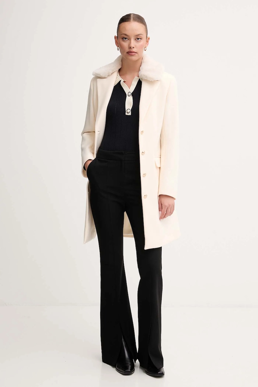 - Prosty, nie blokujący ruchów fason. - Wygodne zapięcie na guziki ułatwia zakładanie i zdejmowanie. - Klasyczne klapy. - Model z odpinanym, sztucznym futerkiem. - Model z kieszeniami, ozdobionymi patkami. - Nieocieplony model na podszewce. - Długość rękawa: 61 cm. - Długość: 89,5 cm. - Szerokość pod pachami: 47 cm. - Szerokość w ramionach: 40,5 cm. - Wymiary podane dla rozmiaru: 36.