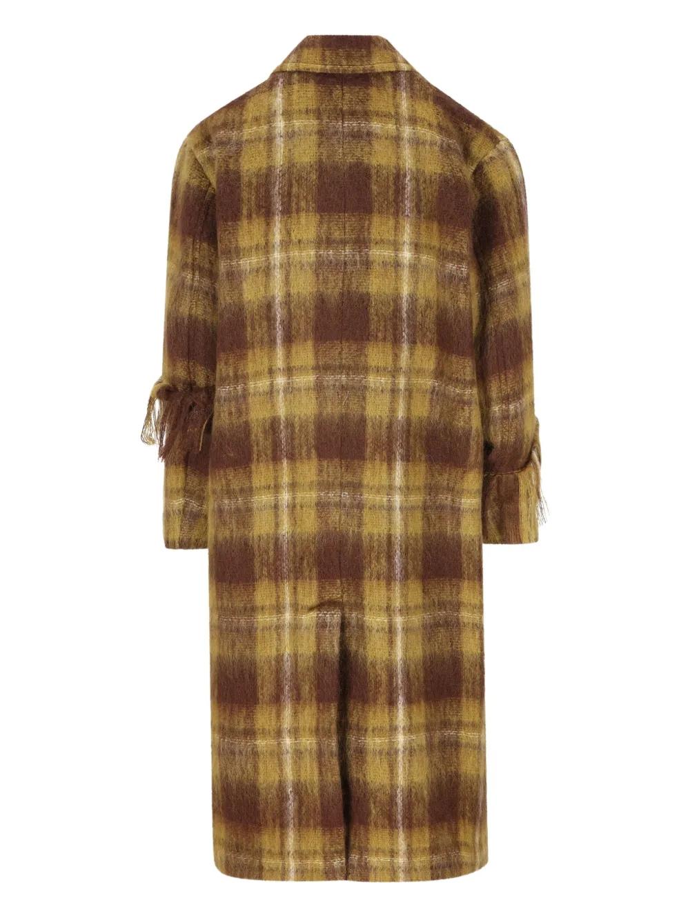 yellow plaid pattern button fastening fringed detail long sleeves notched lapels