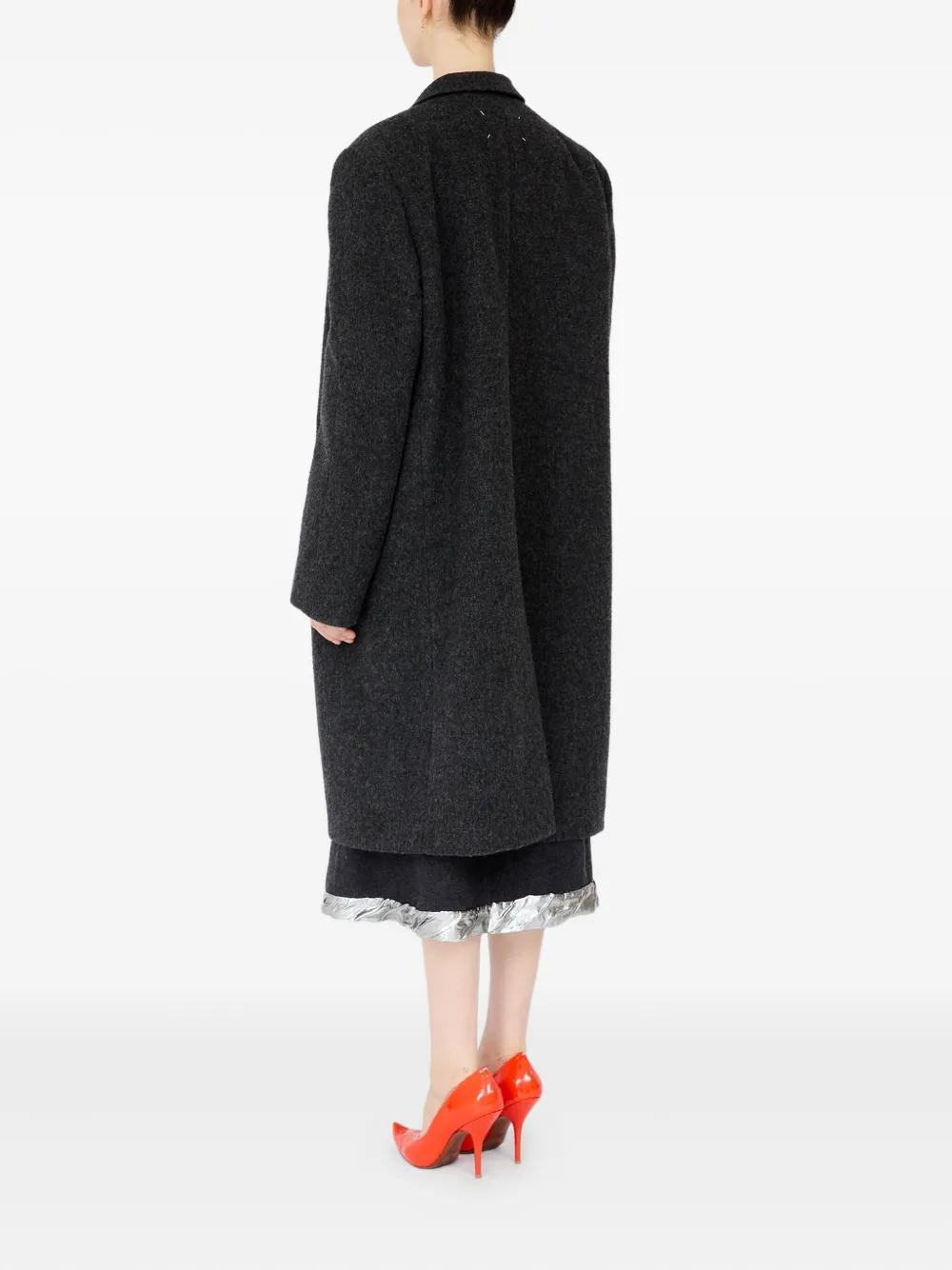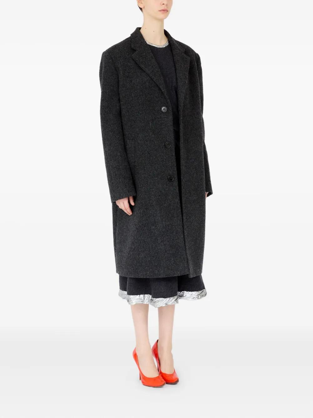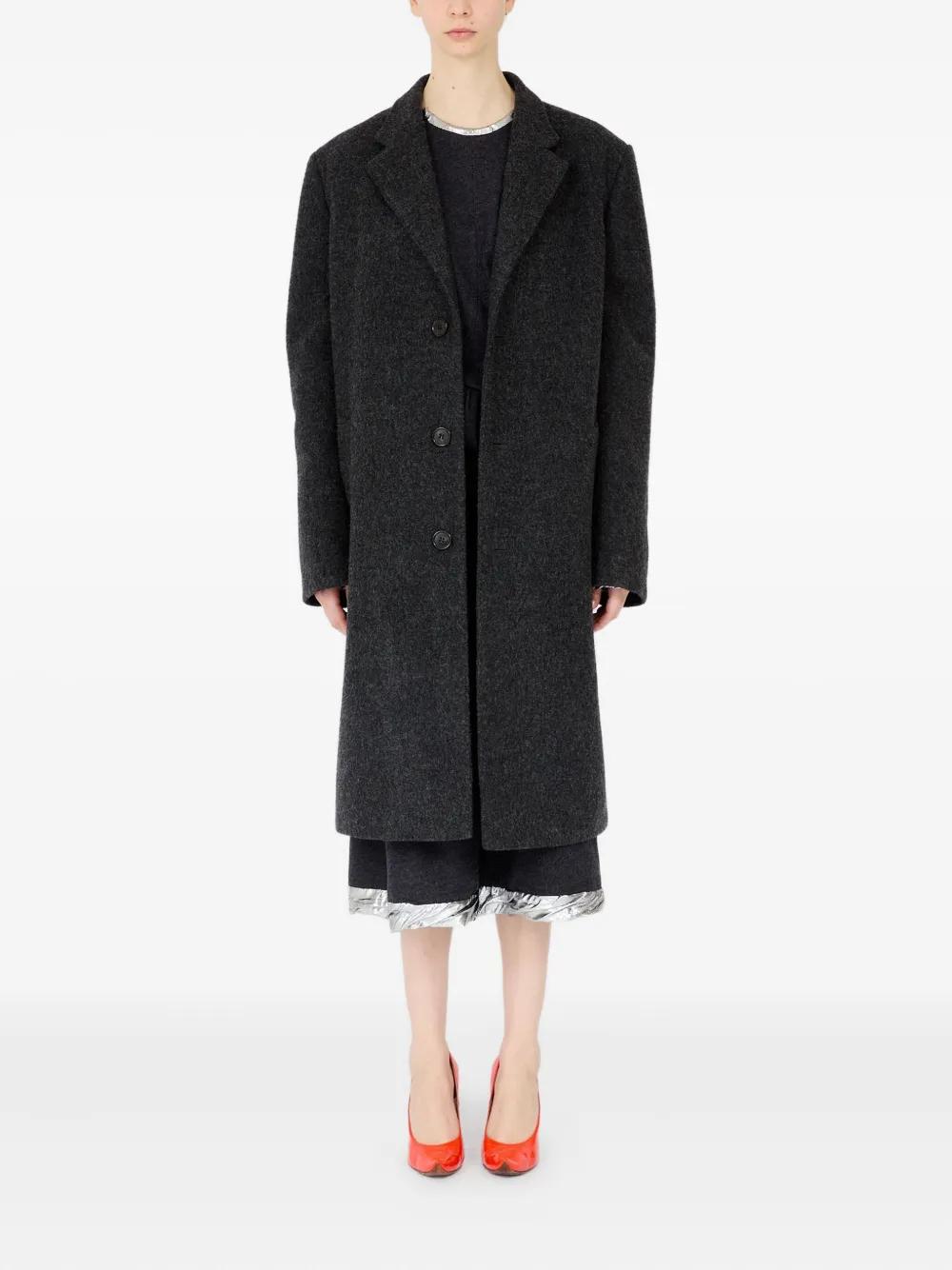 dark grey front button fastening notched lapels long sleeves straight hem signature four-stitch detail