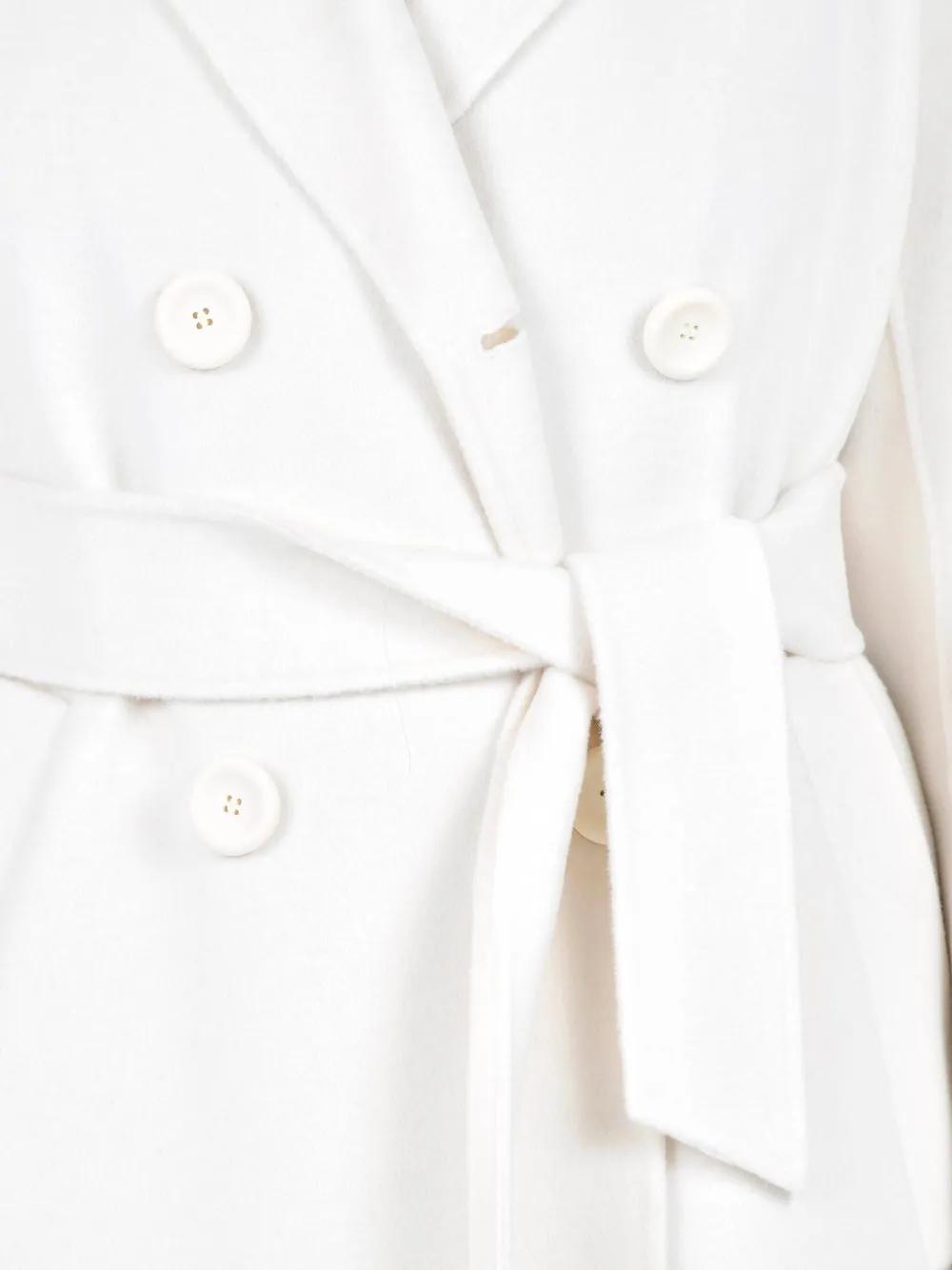 white double-breasted closure button fastening belted notched lapels long sleeves