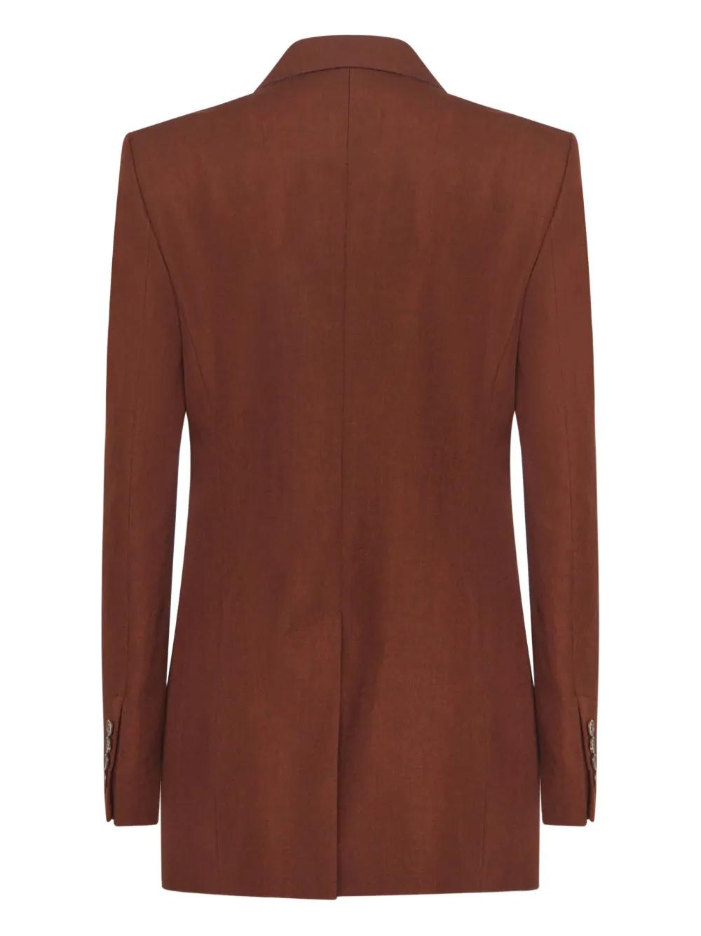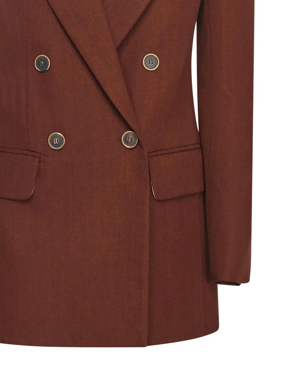 brown double-breasted four buttons flap pockets wool structured shoulders