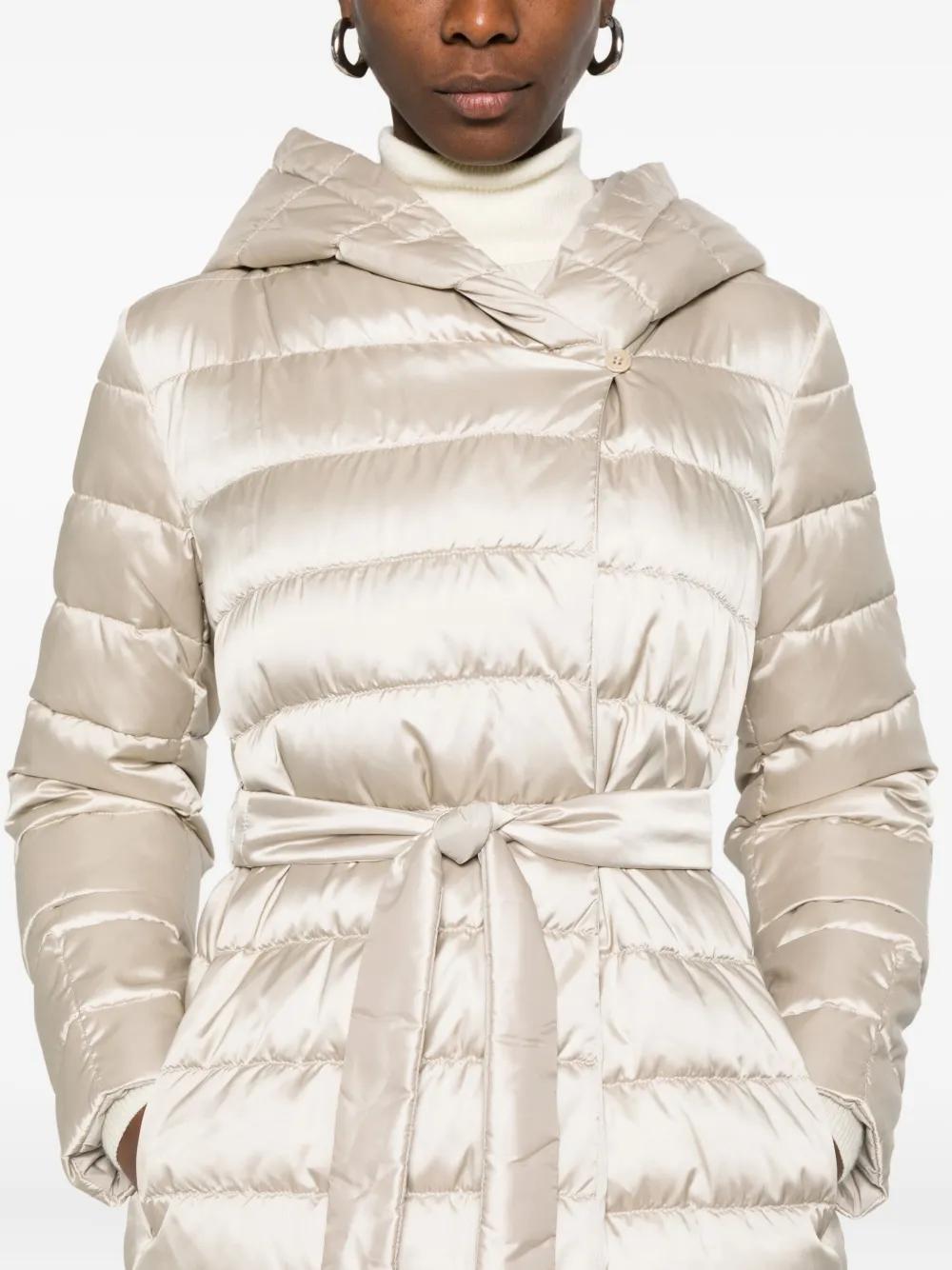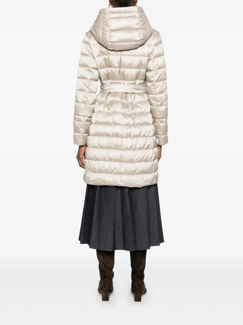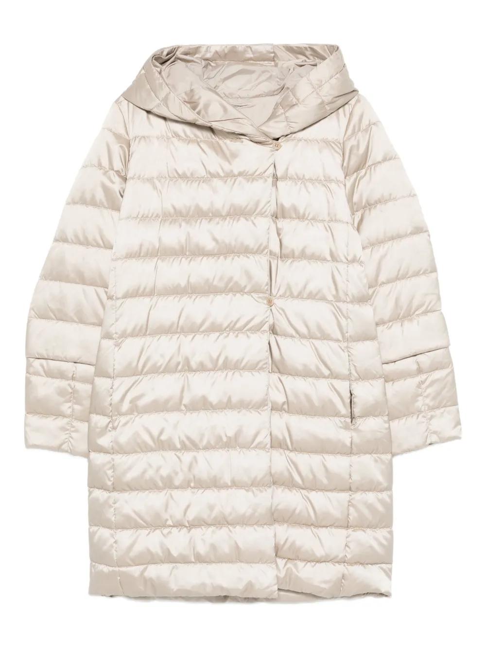 beige quilted hooded button fastening long sleeves side pockets reversible