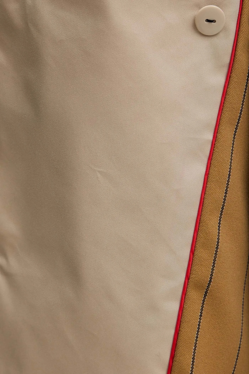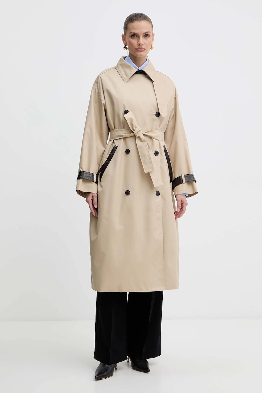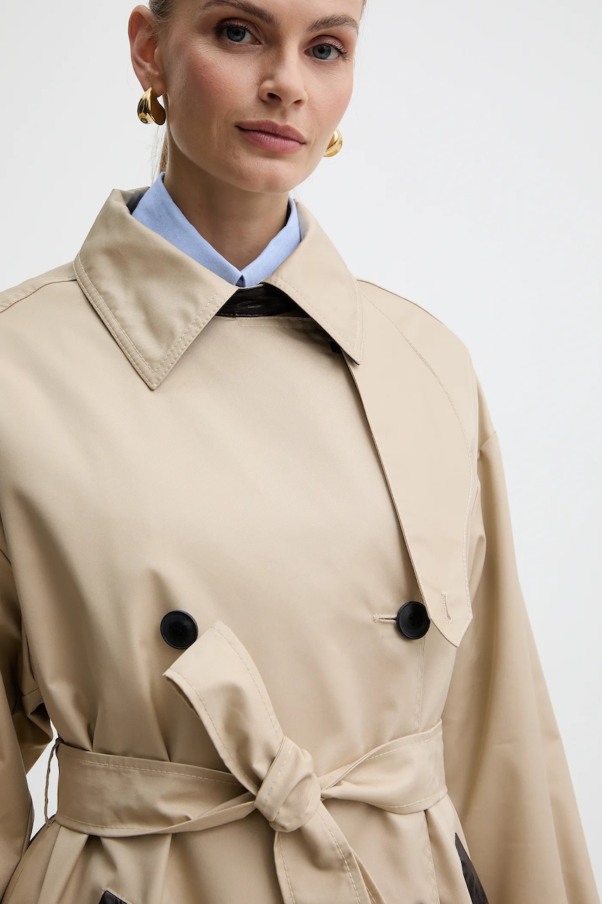 - Nieocieplony model na podszewce. - Luźny fason. - Dwurzędowe zapięcie na guziki. - Dwie wsuwane i zapinane na suwak kieszenie boczne. - Rozcięcie z tyłu. - Model z kołnierzykiem. - Długość rękawa: 53 cm. - Długość: 115 cm. - Szerokość pod pachami: 56 cm. - Wymiary podane dla rozmiaru: S.