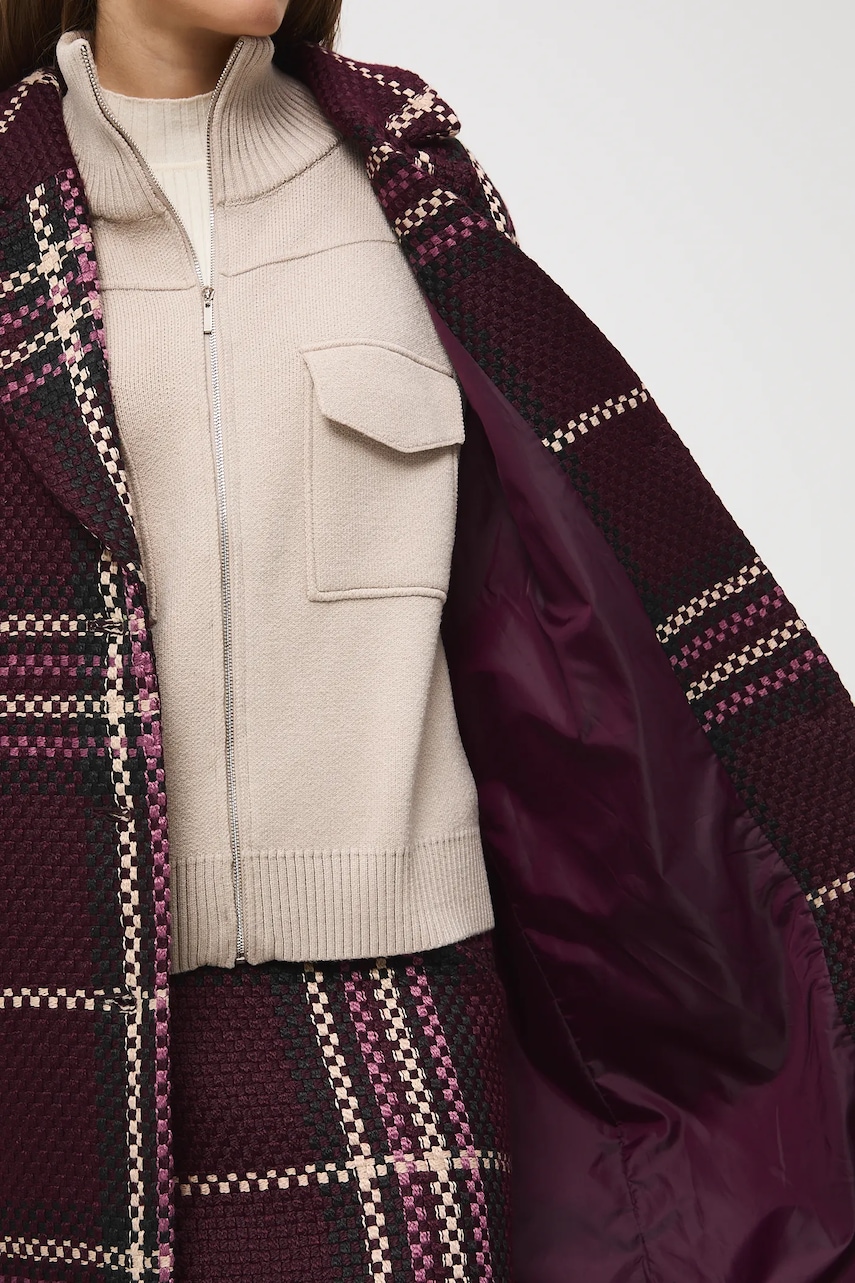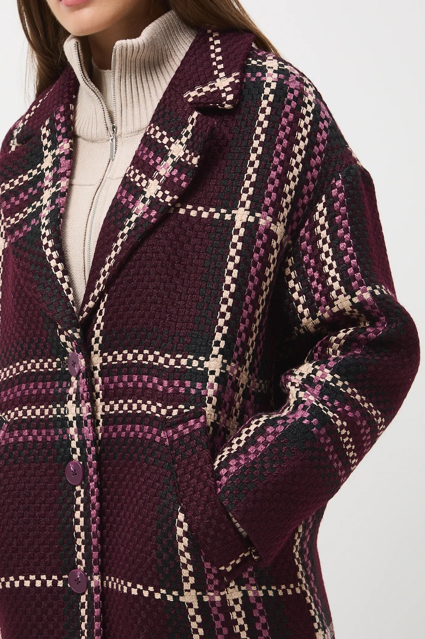 - Fason oversize. - Długi rękaw. - Obniżona linia ramion. - Jednorzędowe zapięcie na guziki. - Klasyczne klapy. - Dwie wsuwane kieszenie boczne. - Rozcięcie z tyłu. - Nieocieplony model na podszewce. - Wzorzysta tkanina. - Wzór w kratę. - Długość rękawa(mierzona od kołnierza): 71,5 cm. - Długość: 115 cm. - Szerokość w biuście: 57 cm. - Wymiary podane dla rozmiaru: S.