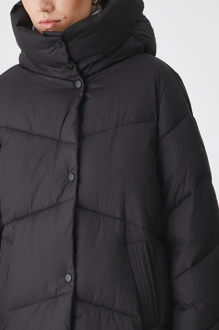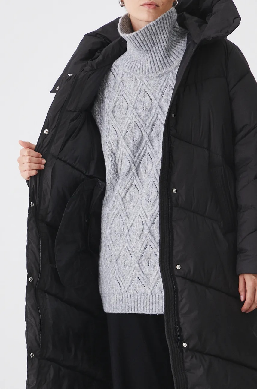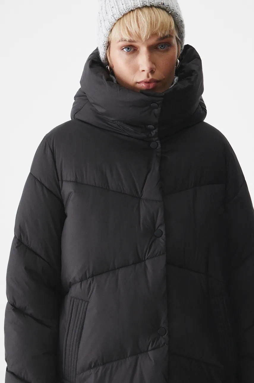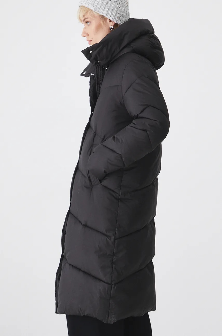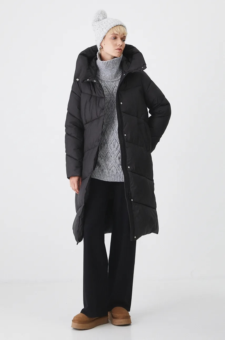 - Model z wypełnieniem DuPont™ Sorona®, które jest doskonałą alternatywą dla naturalnego puchu. Wypełnienie to charakteryzuje się dobrą izolacją termiczną i zachowuje ciepłotę ciała, przy tym jest lekkie i wytrzymałe. - Fason regular. - Zapięcie na suwak i zatrzaski. - Model z kapturem. - Podwyższony kołnierz. - Dwie wsuwane kieszenie boczne. - Pikowany model. - Ocieplony model. - Długość rękawa: 64 cm. - Długość: 113 cm. - Szerokość w biuście: 57,5 cm. - Szerokość w barkach: 43 cm. - Wymiary podane dla rozmiaru: S.