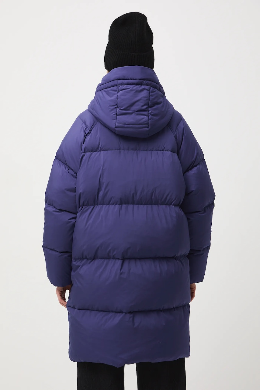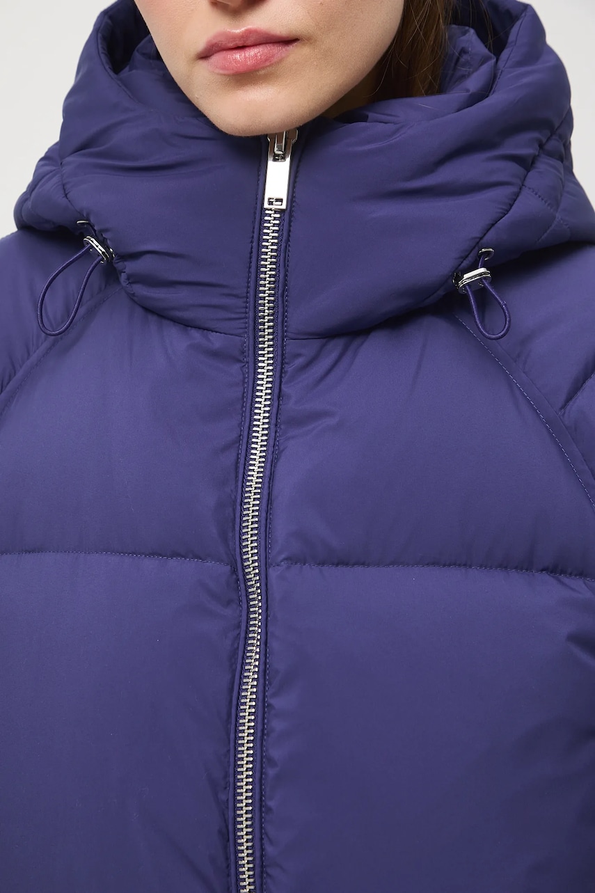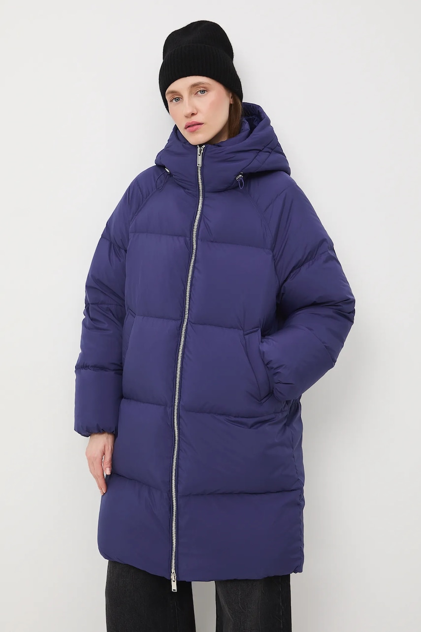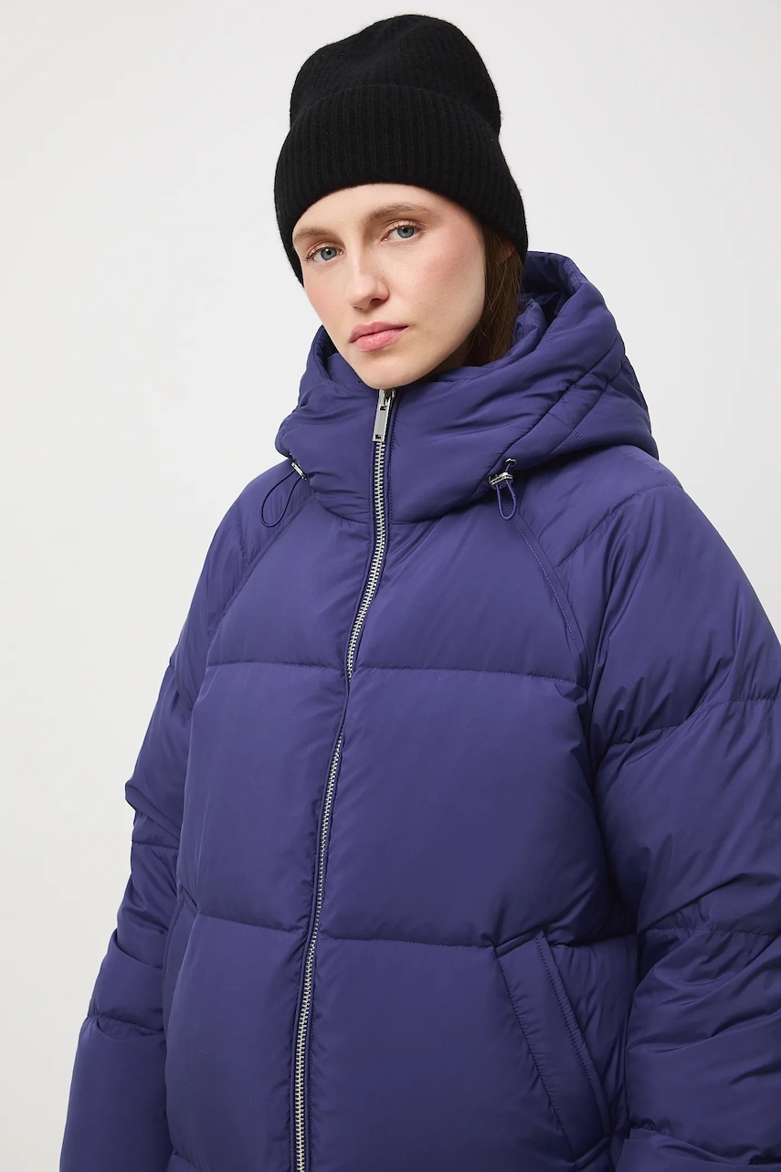- Fason oversize. - Długi, raglanowy rękaw. - Kaptur ściągany troczkami ze stoperami. - Zapięcie na dwustronny suwak. - Wsuwane kieszenie. - Ocieplony model na podszewce. - Wypełnienie z naturalnego puchu i pierza. - Pikowany model. - Długość rękawa(mierzona od kaptura): 80 cm. - Długość: 100 cm. - Szerokość w biuście: 68 cn. - Wymiary podane dla rozmiaru: S.