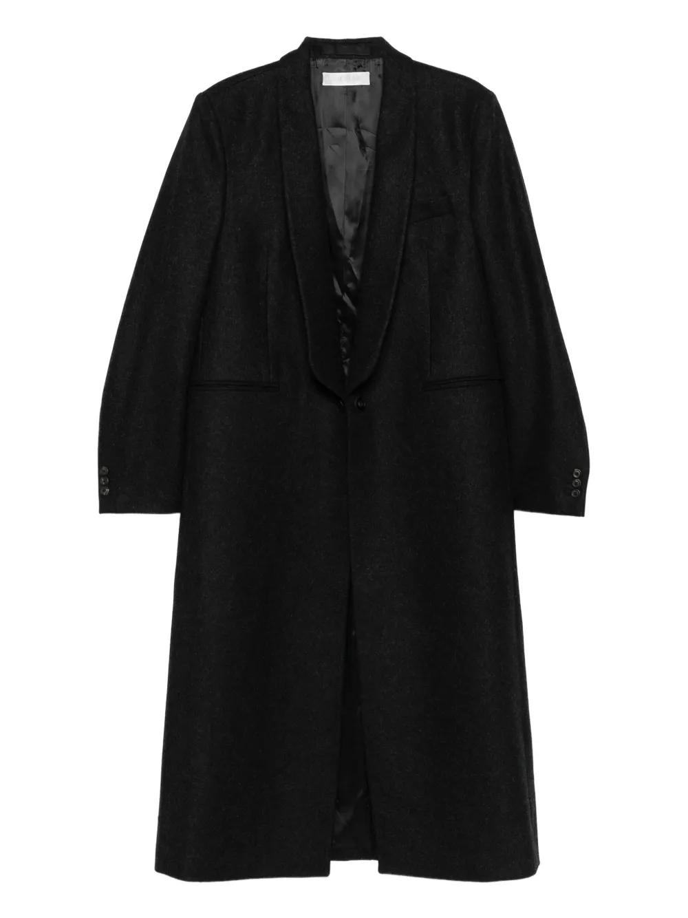 grey water-repellent melton shawl collar single-breasted fastening long sleeves welt pockets