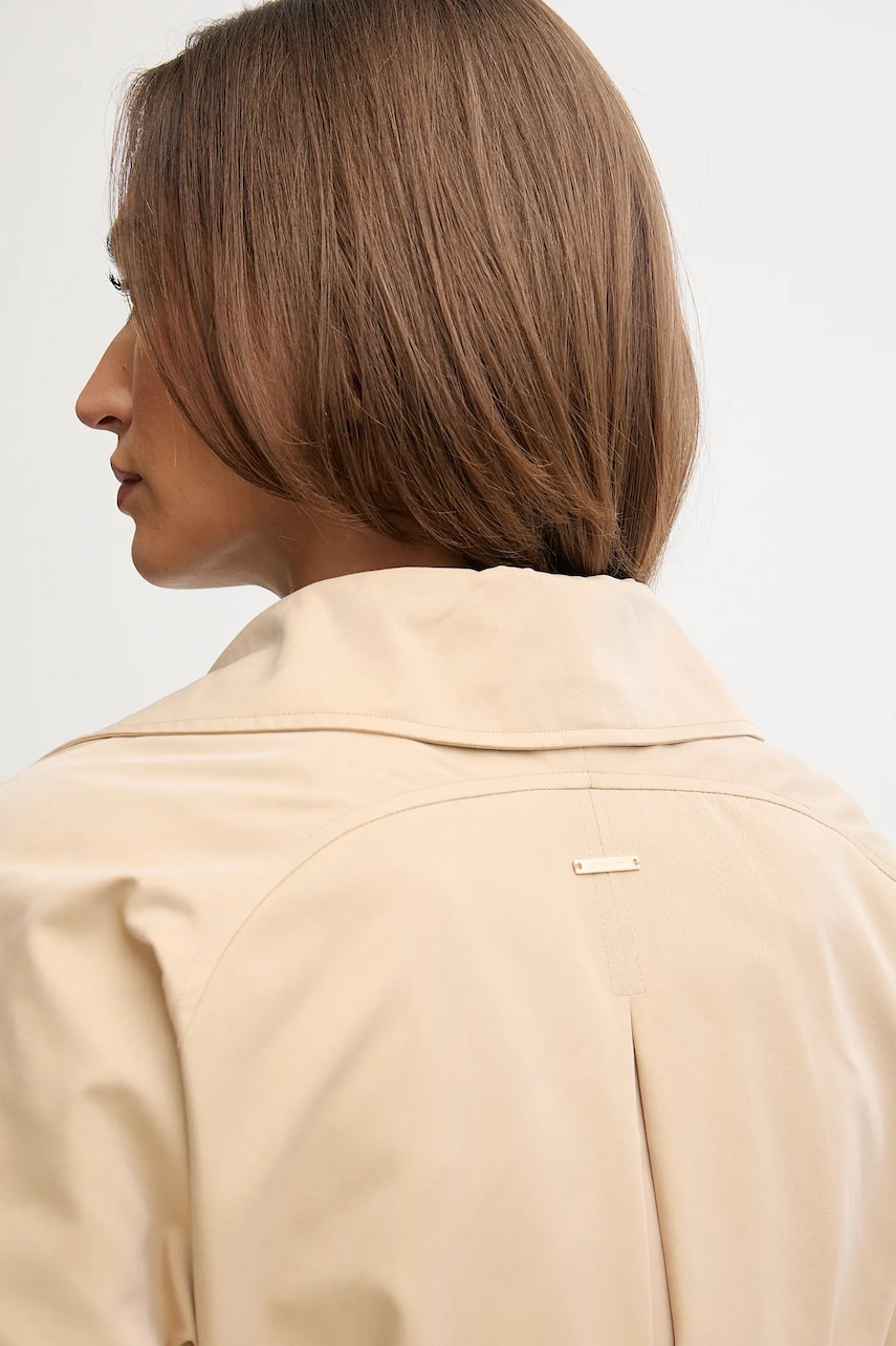 - Prosty, nie blokujący ruchów fason. - Wygodne zapięcie na guziki ułatwia zakładanie i zdejmowanie. - Model z miękkim kołnierzykiem. - Rękaw raglanowy, dzięki swojej konstrukcji, zapewnia większą swobodę ruchu. - Miękkie mankiety z zapięciem na guziki. - Dwie wsuwane kieszenie boczne. - Dołączony tekstylny pasek. - Nieocieplony model na podszewce. - Długość rękawa(mierzona od kołnierzyka): 72 cm. - Długość: 109,5 cm. - Szerokość pod pachami: 54 cm. - Wymiary podane dla rozmiaru: S.