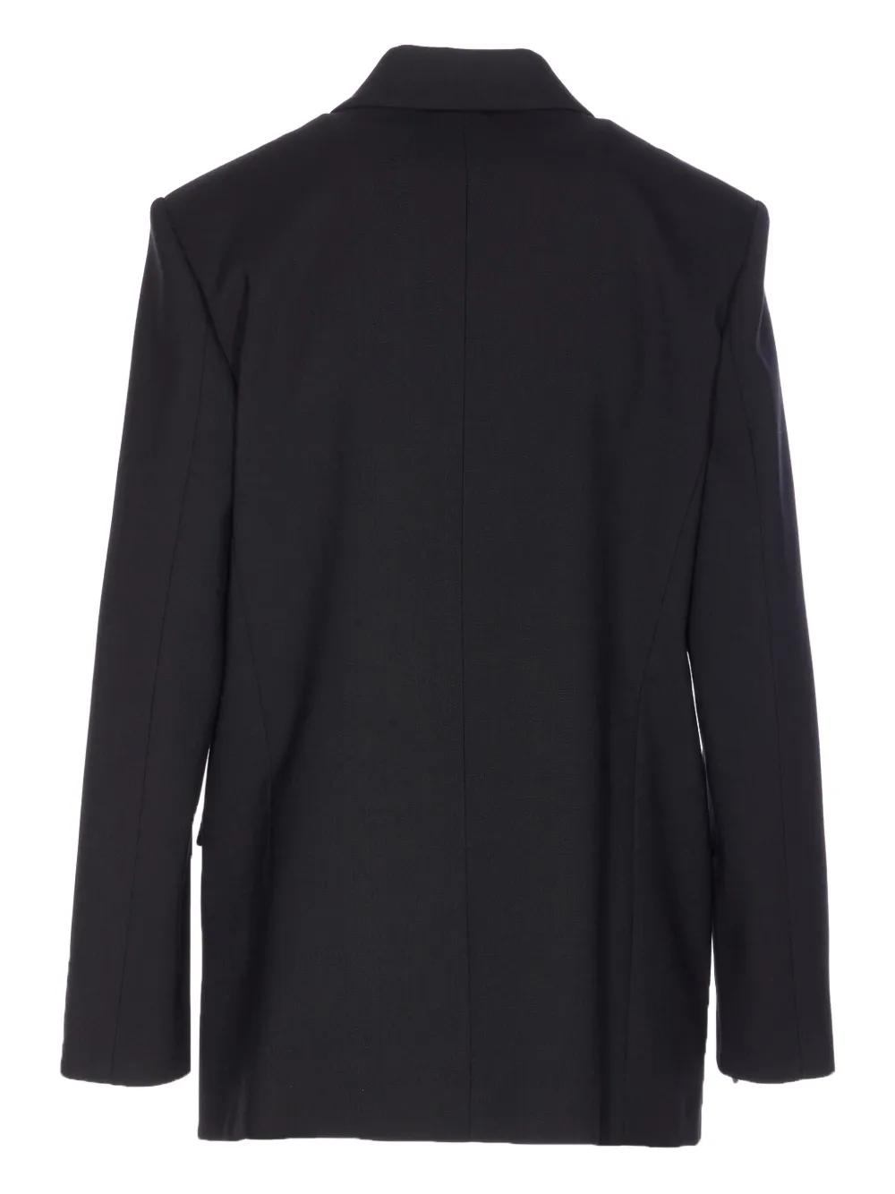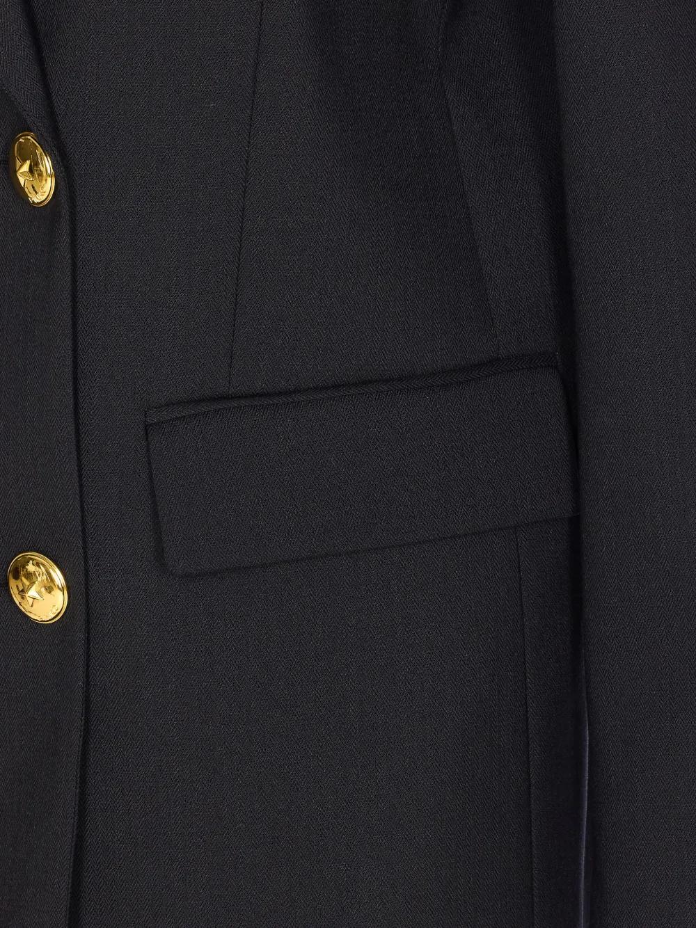 black v-neck double-breasted button closure long sleeves reinforced shoulder