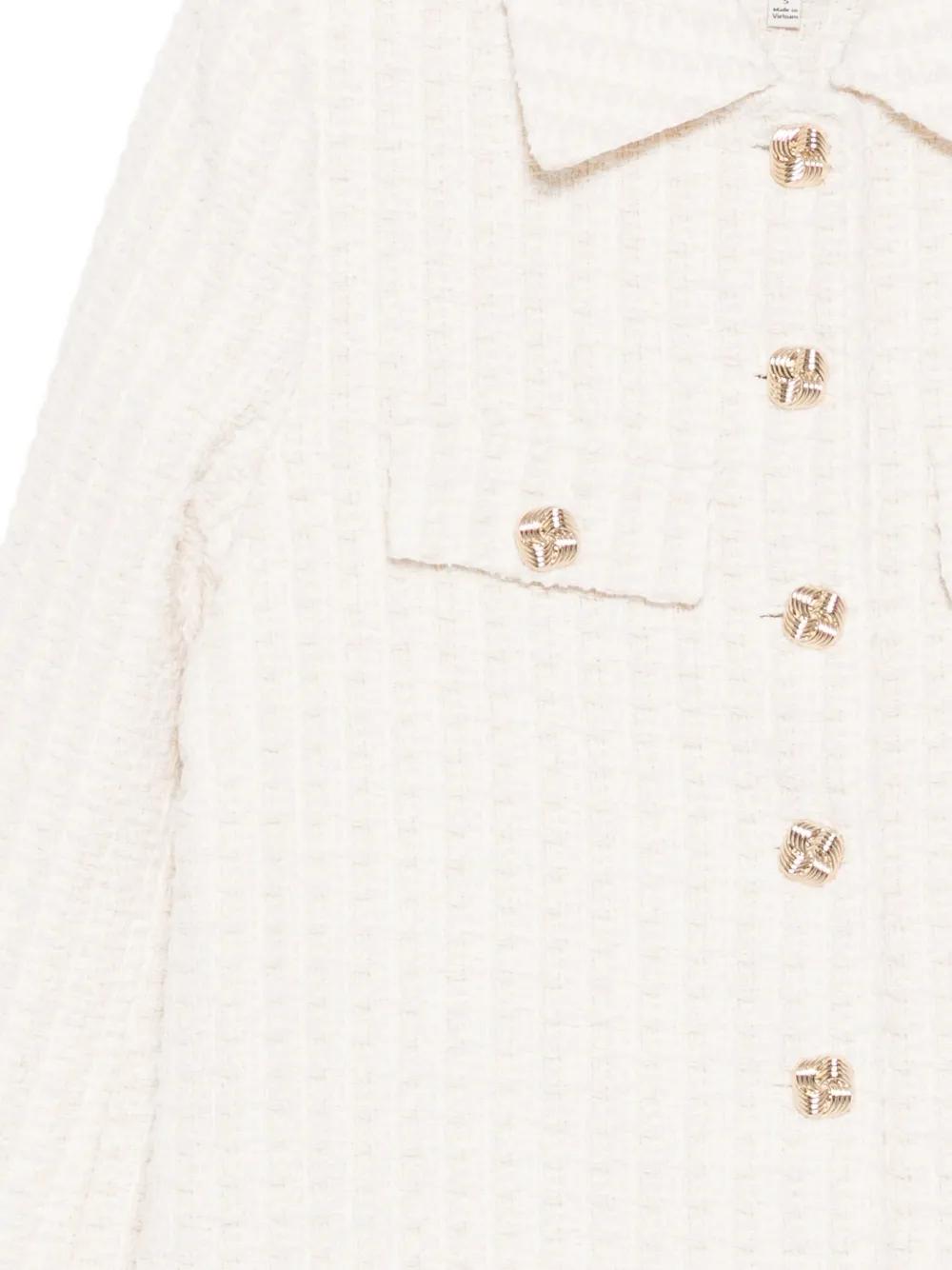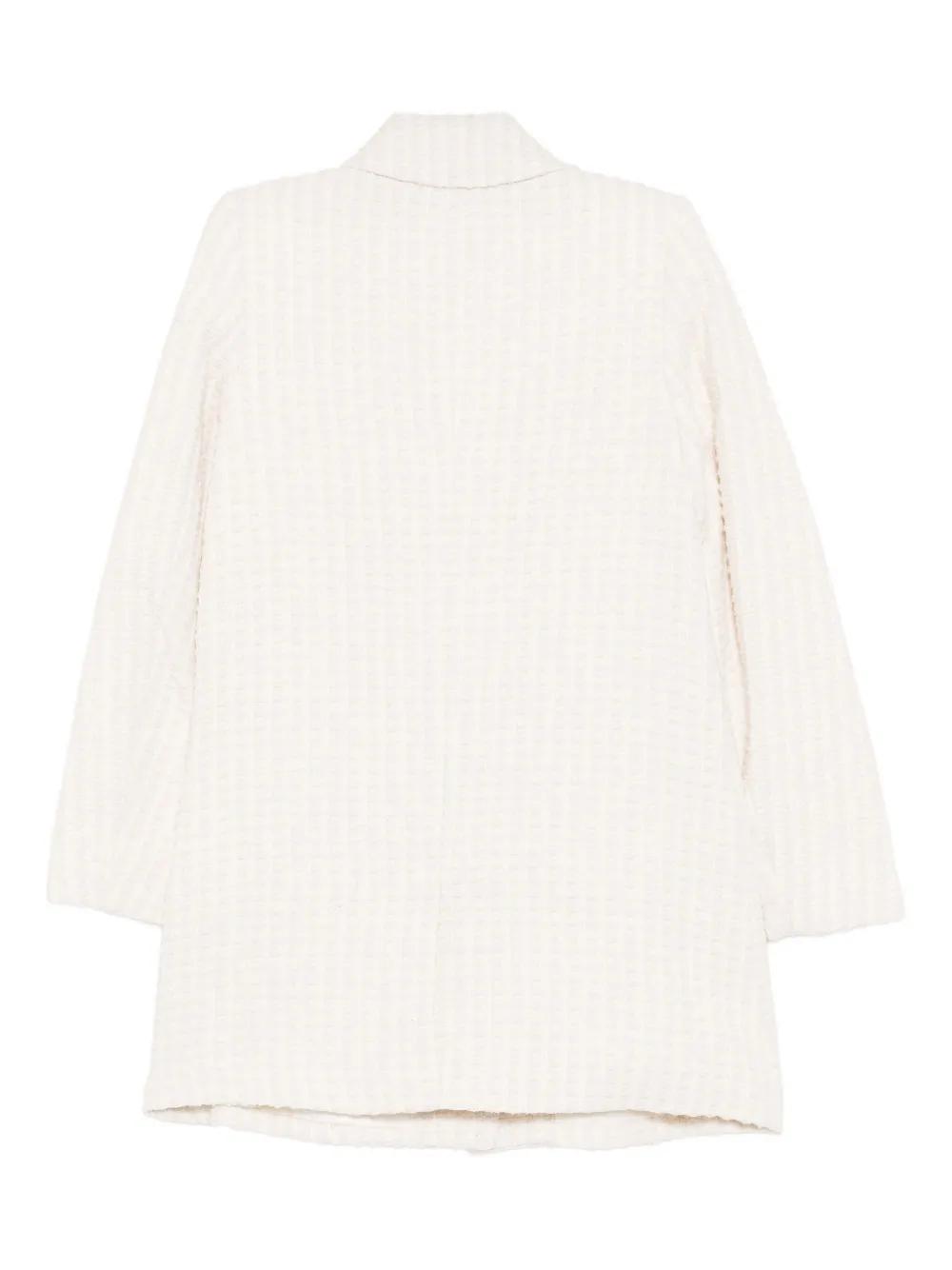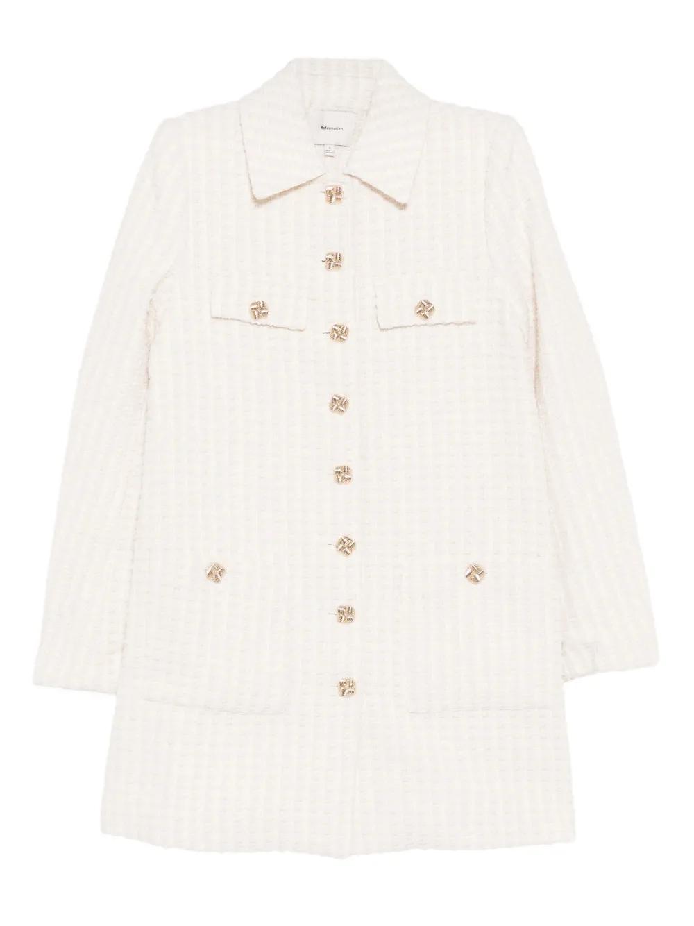 beige logo detail at collar front pockets long sleeves concealed fastening
