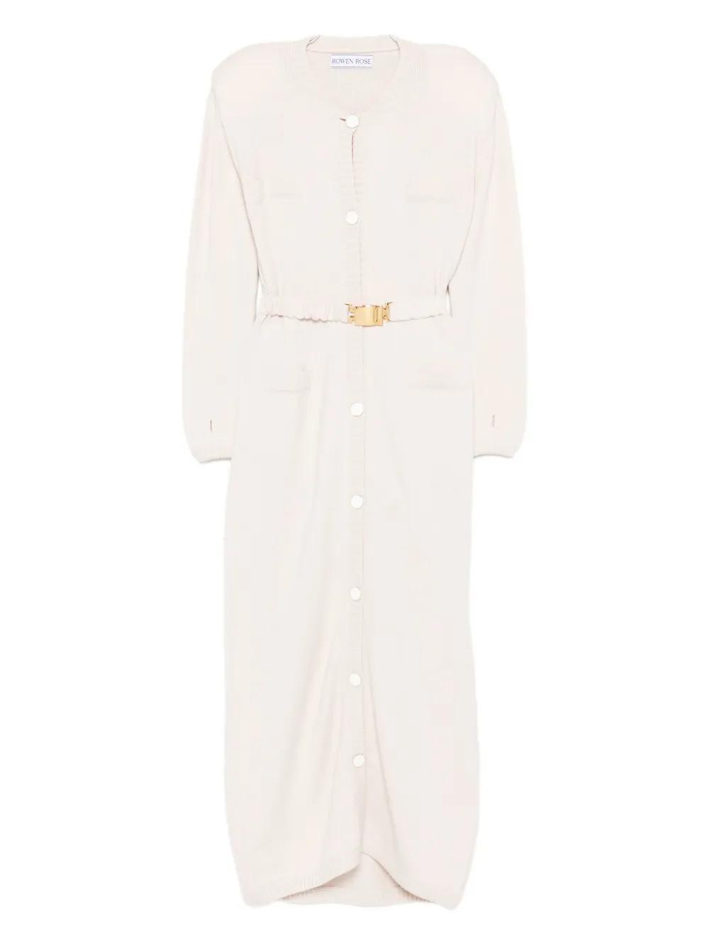 white button fastening belted gold-tone hardware decorative welt pockets long sleeves