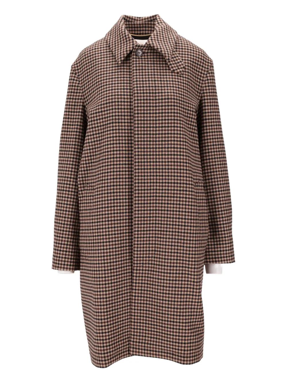 beige checked pattern point collar front button fastening long sleeves two side slit pockets