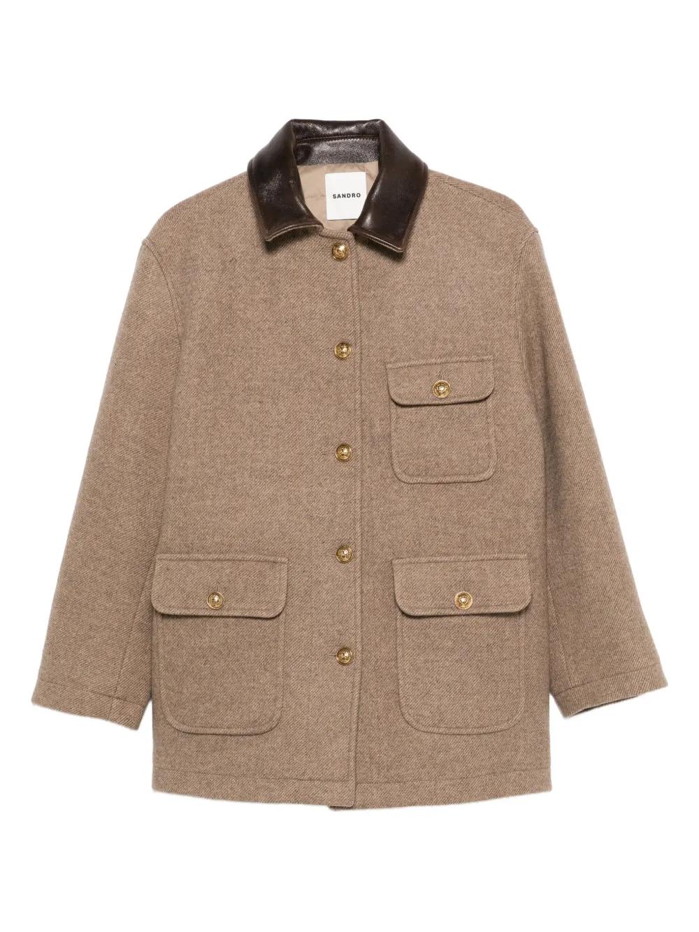 SANDRO contrast-collar flap-pockets single-breasted coat - Brown