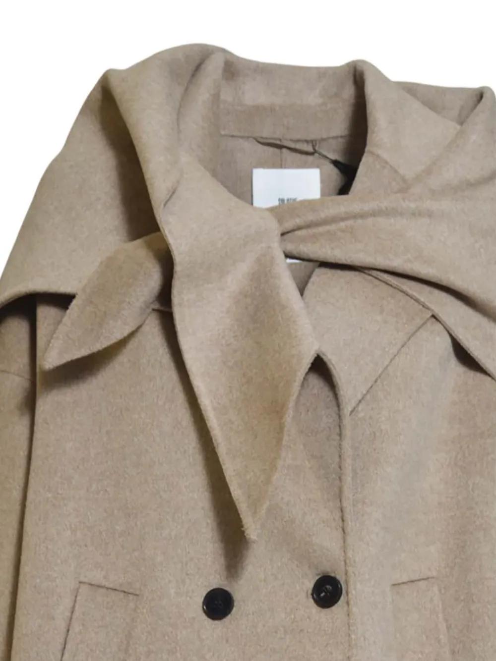 brown shawl collar double-breasted button fastening