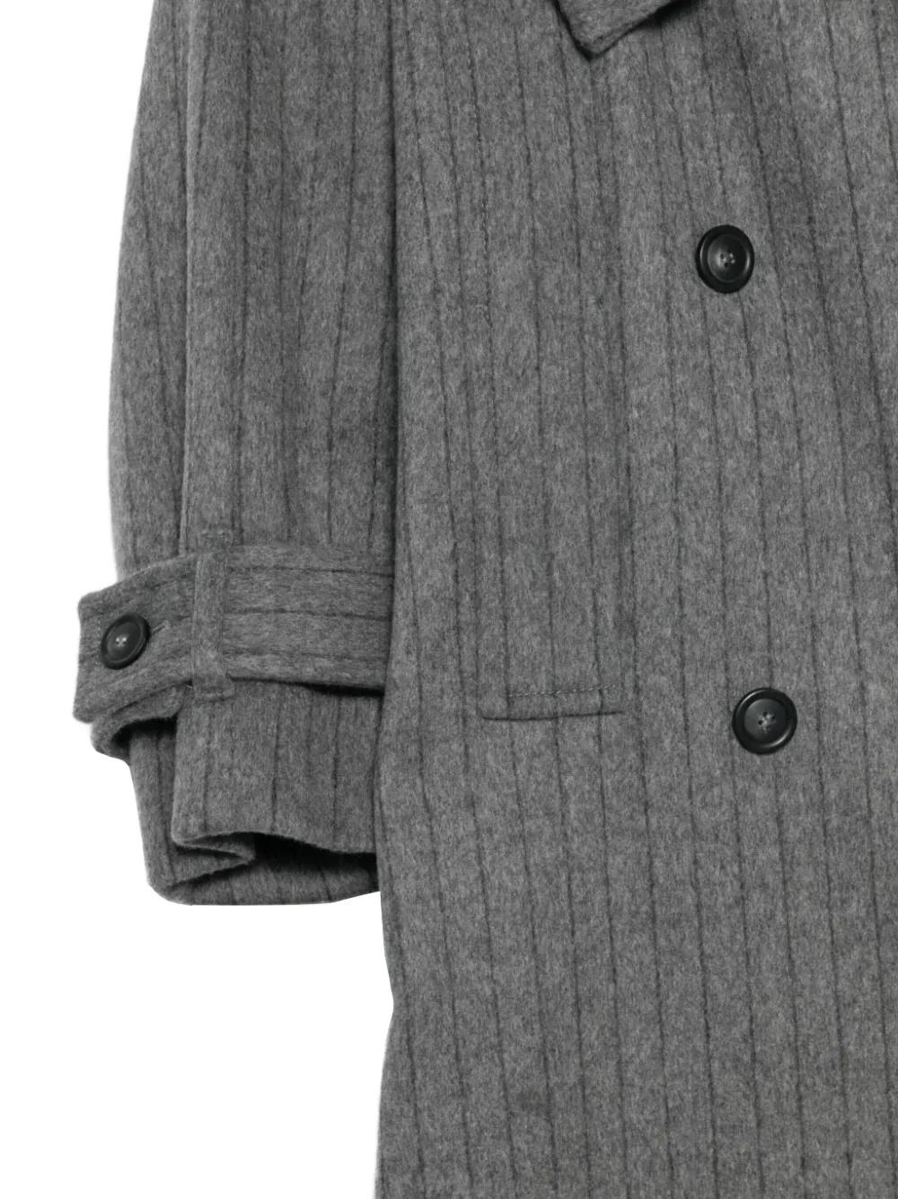 grey pinstriped double-breasted button fastening belt cuff straps