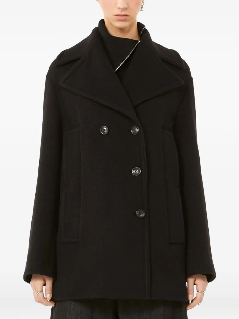 black double-breasted button fastening wide lapels front welt pockets long sleeves
