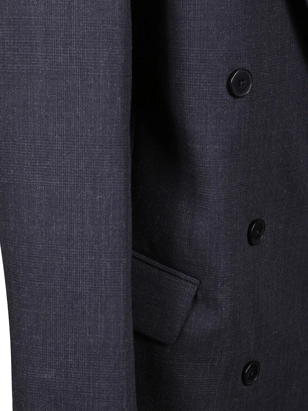 navy double-breasted button fastening peaked lapels flap pockets