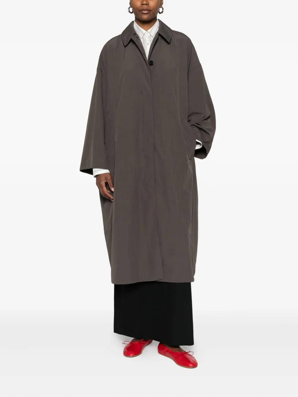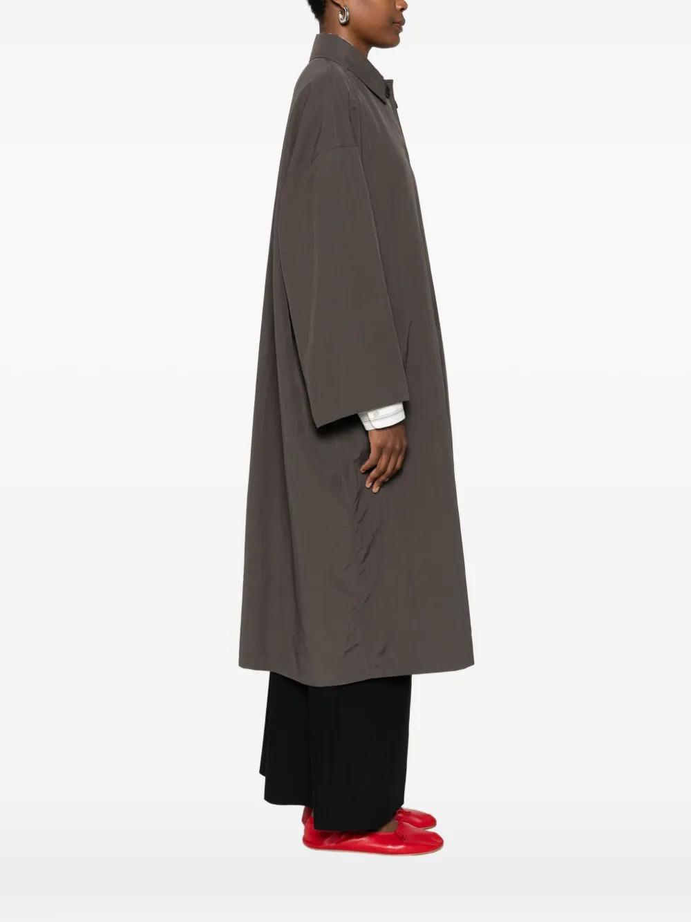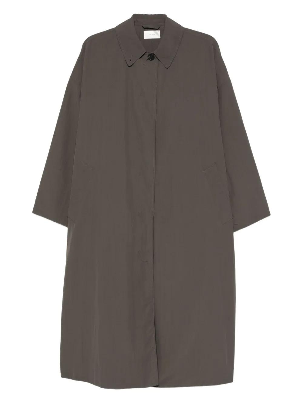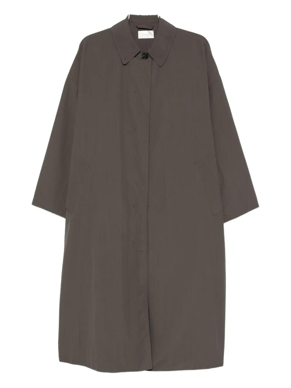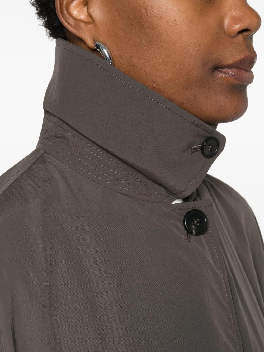 taupe brown pointed collar front button fastening side welt pockets long sleeves