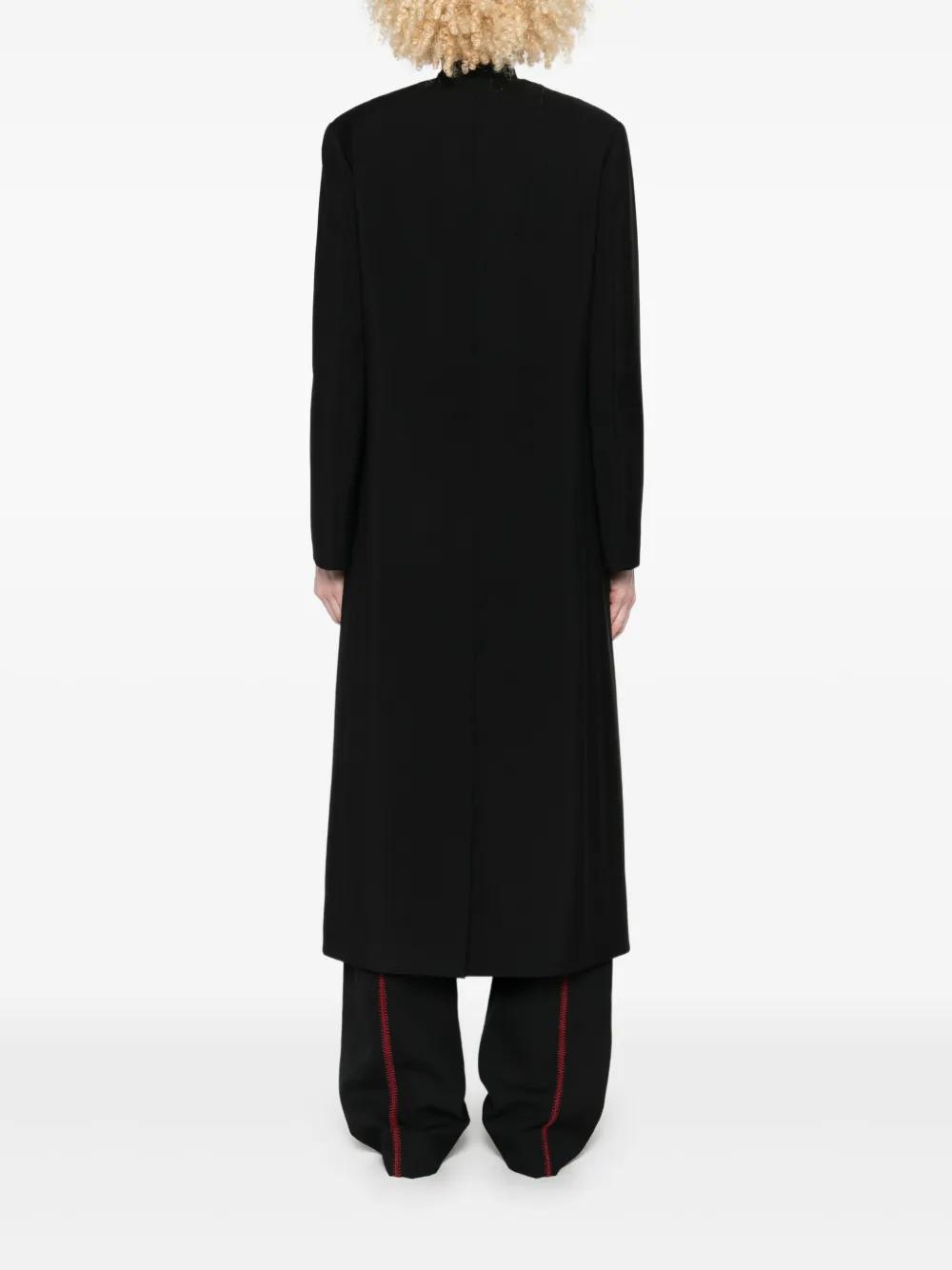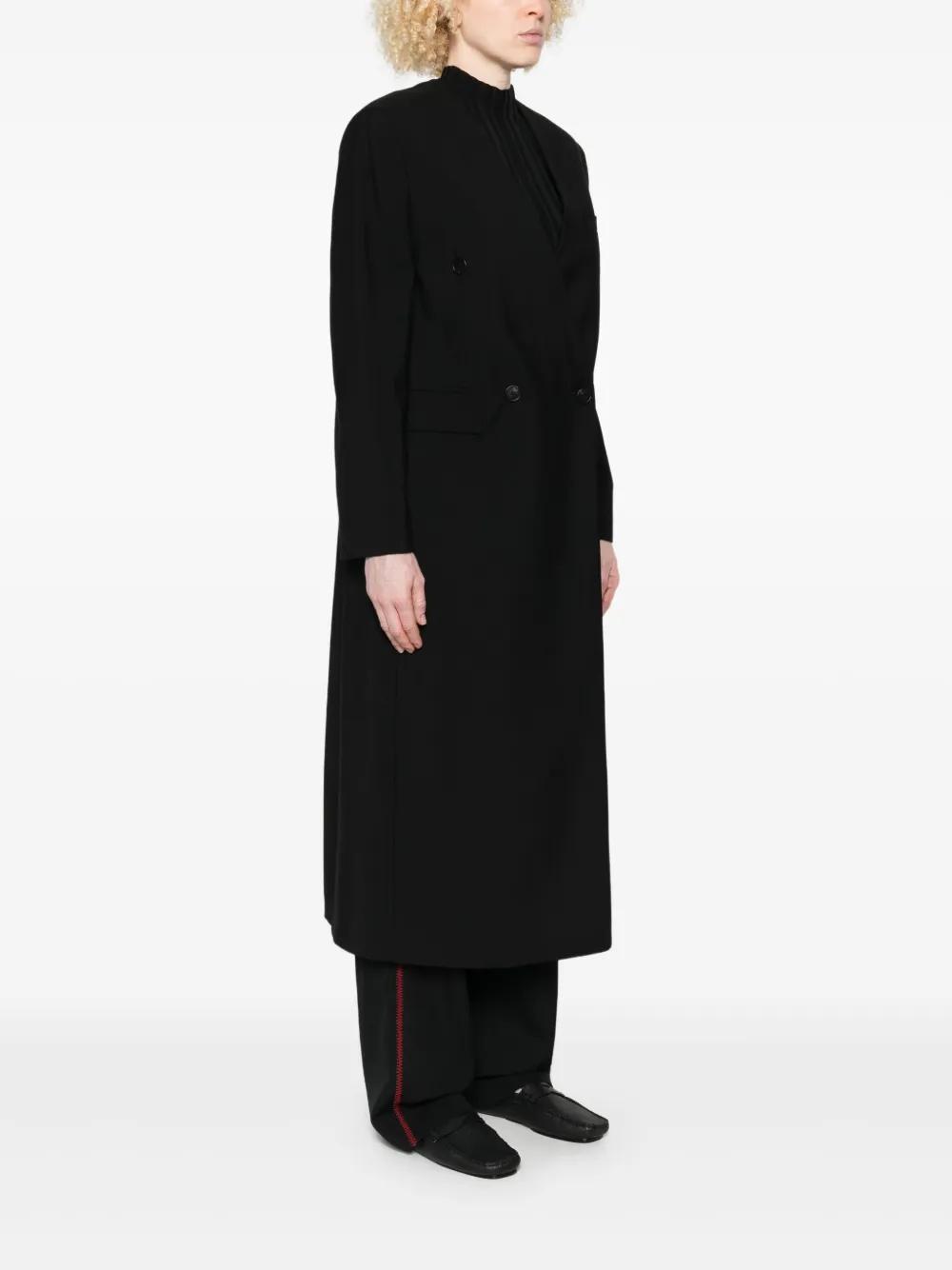 black V-neck double-breasted button fastening front flap pockets long sleeves