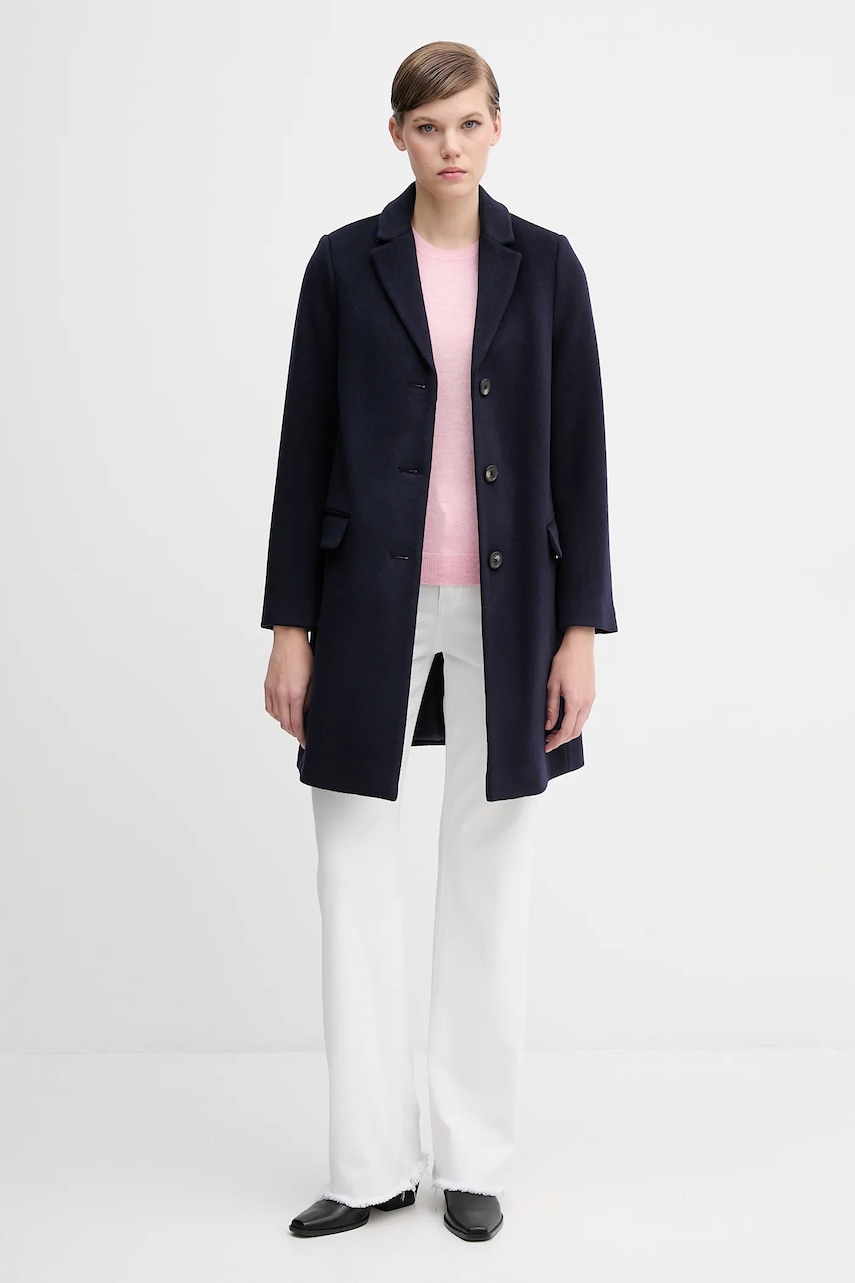 United Colors of Benetton płaszcz z dodatkiem wełny kolor granatowy 2V0PDN062