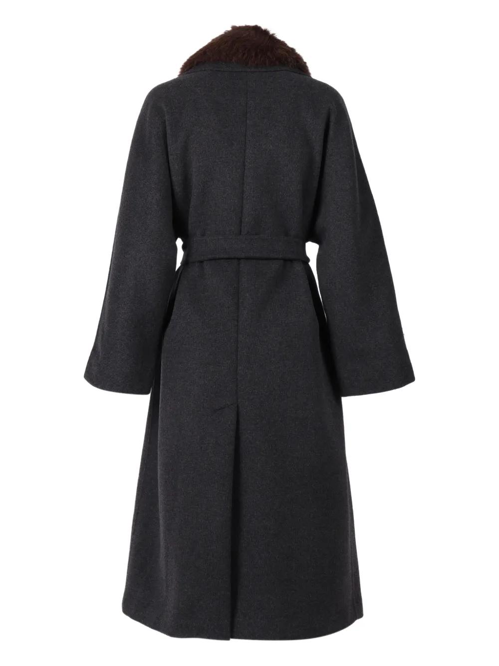 anthracite fur collar belt long sleeves wrap design rear vent