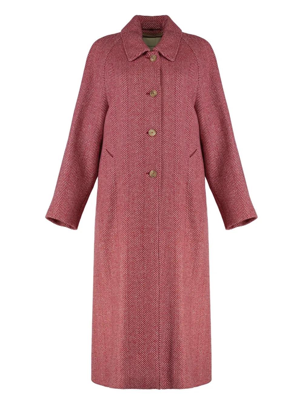 red herringbone pattern button fastening long sleeves front pockets back vent