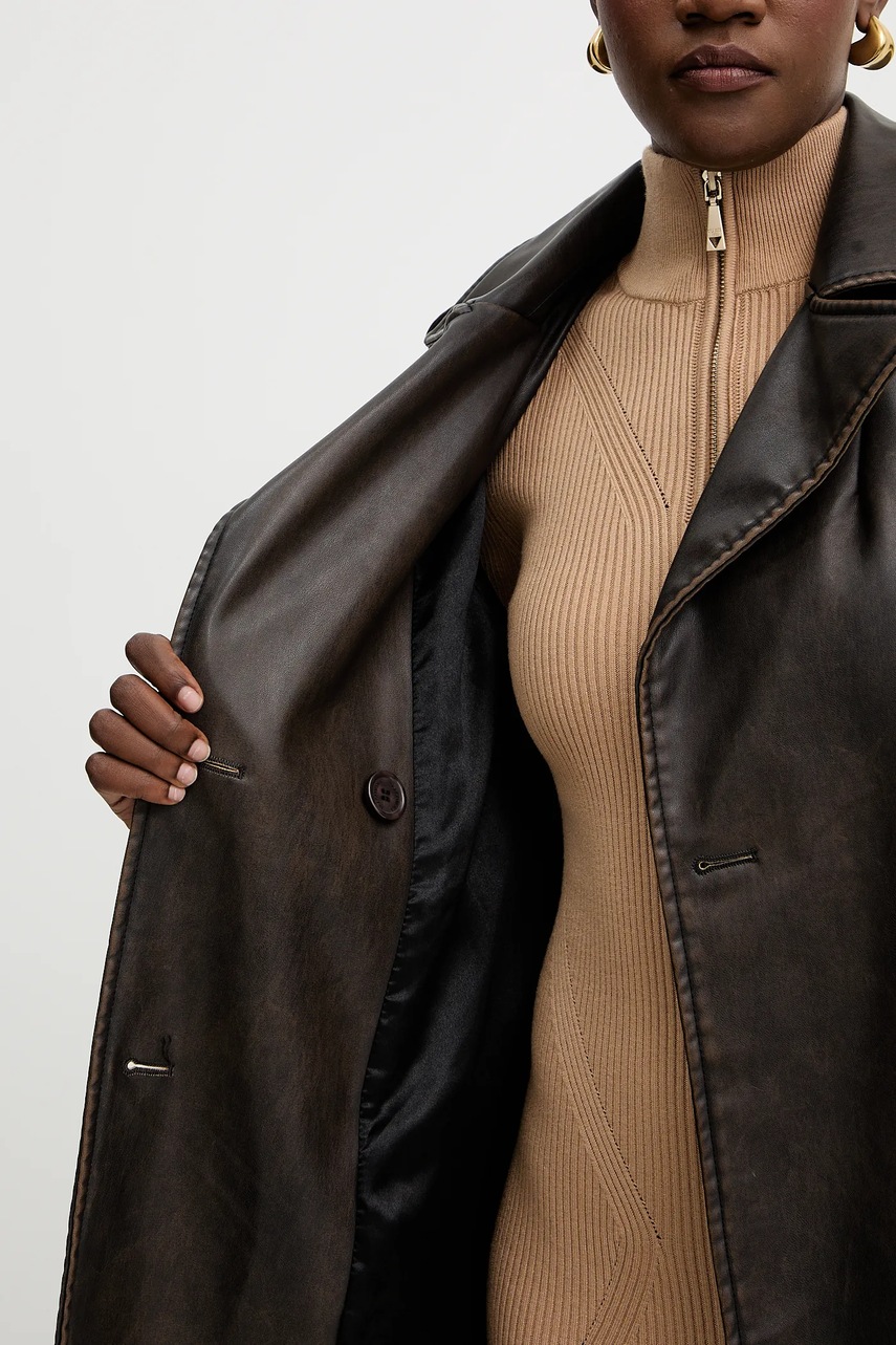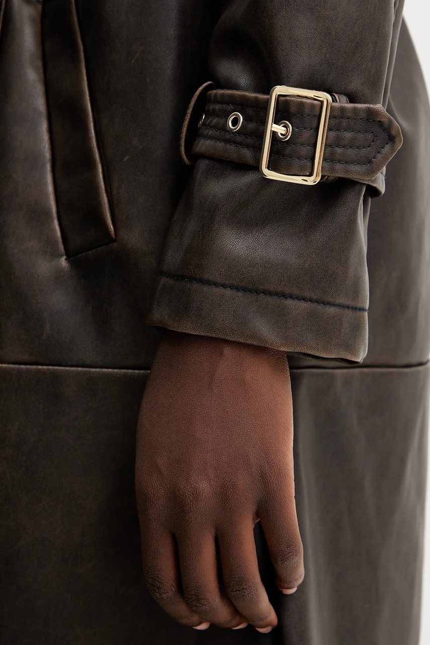 - Prosty, nie blokujący ruchów fason. - Dwurzędowe zapięcie na guziki. - Dołączony pasek ze skóry ekologicznej. - Wsuwane kieszenie zewnętrzne. - Klasyczne klapy. - Dodatkowa warstwa materiału w postaci podszewki. - Na ramionach pagony. - Długość rękawa: 63 cm. - Długość: 114 cm. - Szerokość pod pachami: 45 cm. - Szerokość w ramionach: 40 cm. - Wymiary podane dla rozmiaru: S.