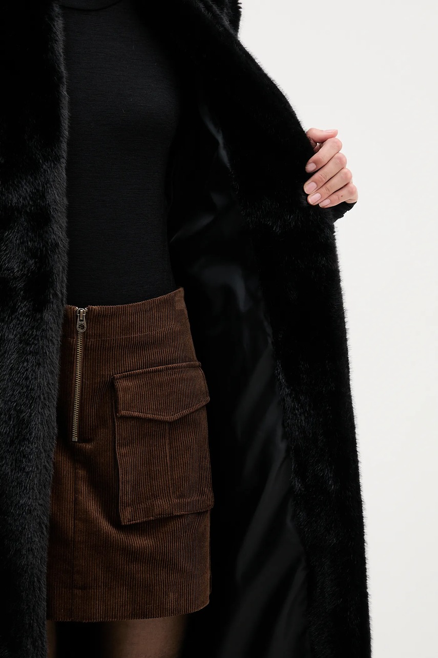 - Prosty, nie blokujący ruchów fason. - Dodatkowa warstwa materiału w postaci podszewki. - Model bez zapięcia. - W talii pasek, który modeluje sylwetkę i dodatkowo podkreśla talię. - Dwie wsuwane kieszenie boczne. - Gruba, lekko elastyczna tkanina. - Długość: 124 cm. - Szerokość pod pachami: 52 cm. - Wymiary podane dla rozmiaru: 36.