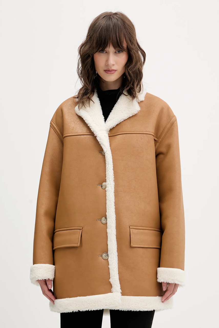 - Prosty, nie blokujący ruchów fason. - Model z kołnierzykiem. - Zapięcie na guziki. - Model z kieszeniami, ozdobionymi patkami. - Długość rękawa: 58 cm. - Długość: 75 cm. - Szerokość pod pachami: 55 cm. - Szerokość w ramionach: 45 cm. - Wymiary podane dla rozmiaru: 36.