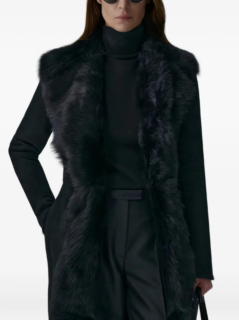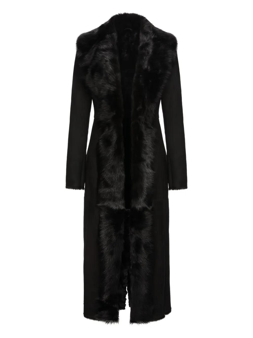 fur-trim coat - Black