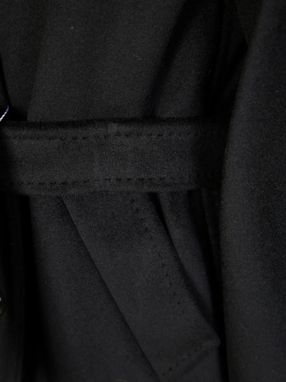 black double-breasted notched lapels button fastening long sleeves belt