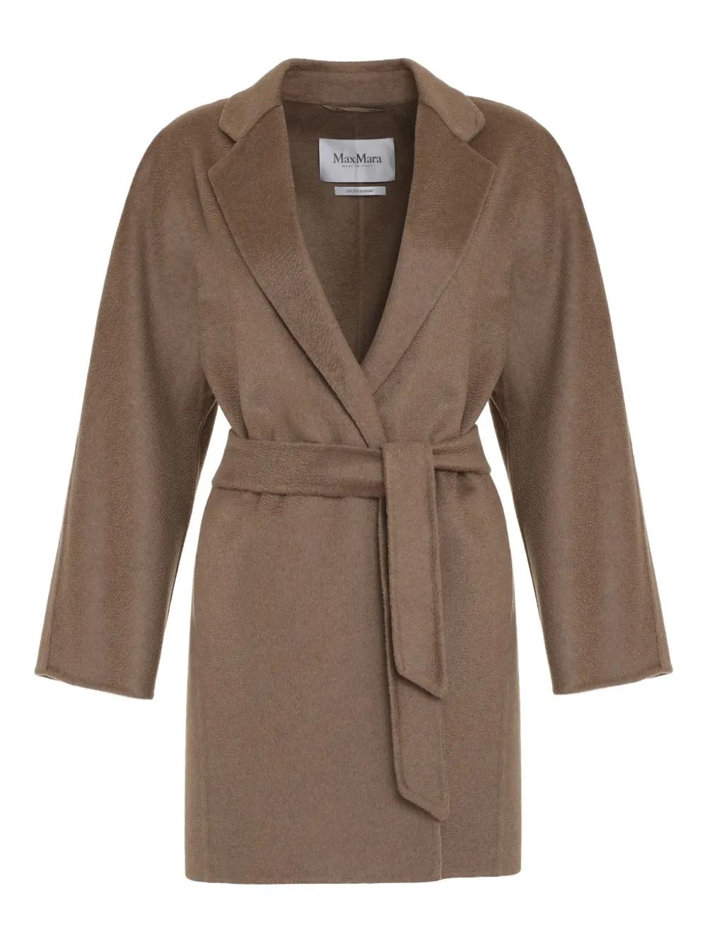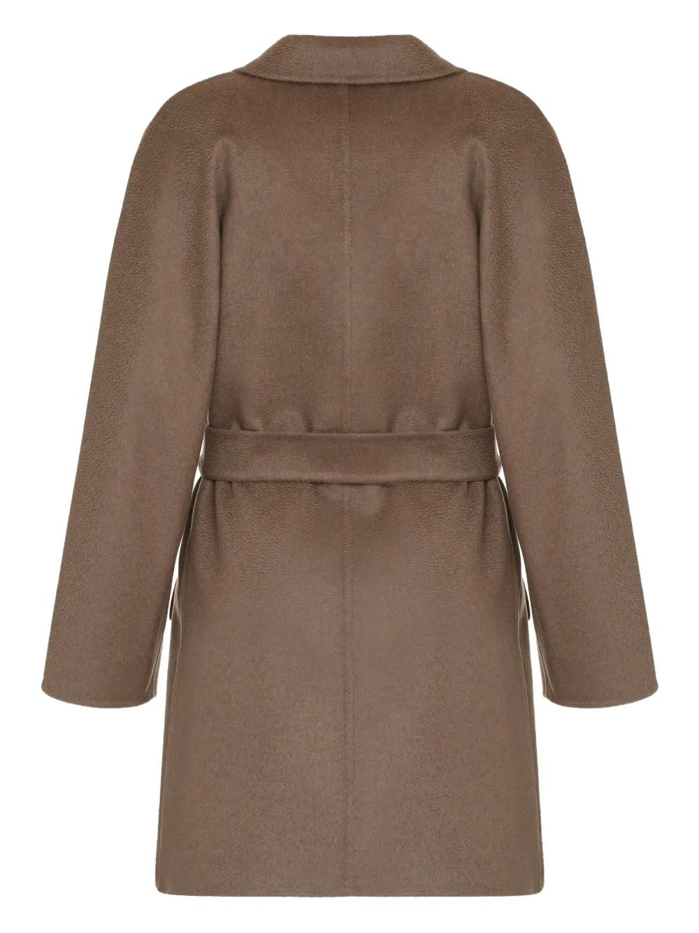 chocolate brown belted waist notched lapels long sleeves straight hem
