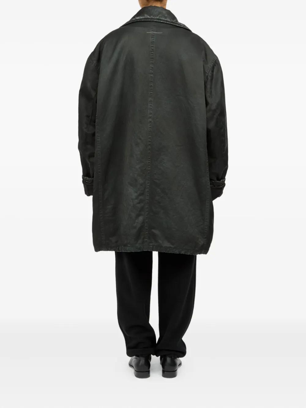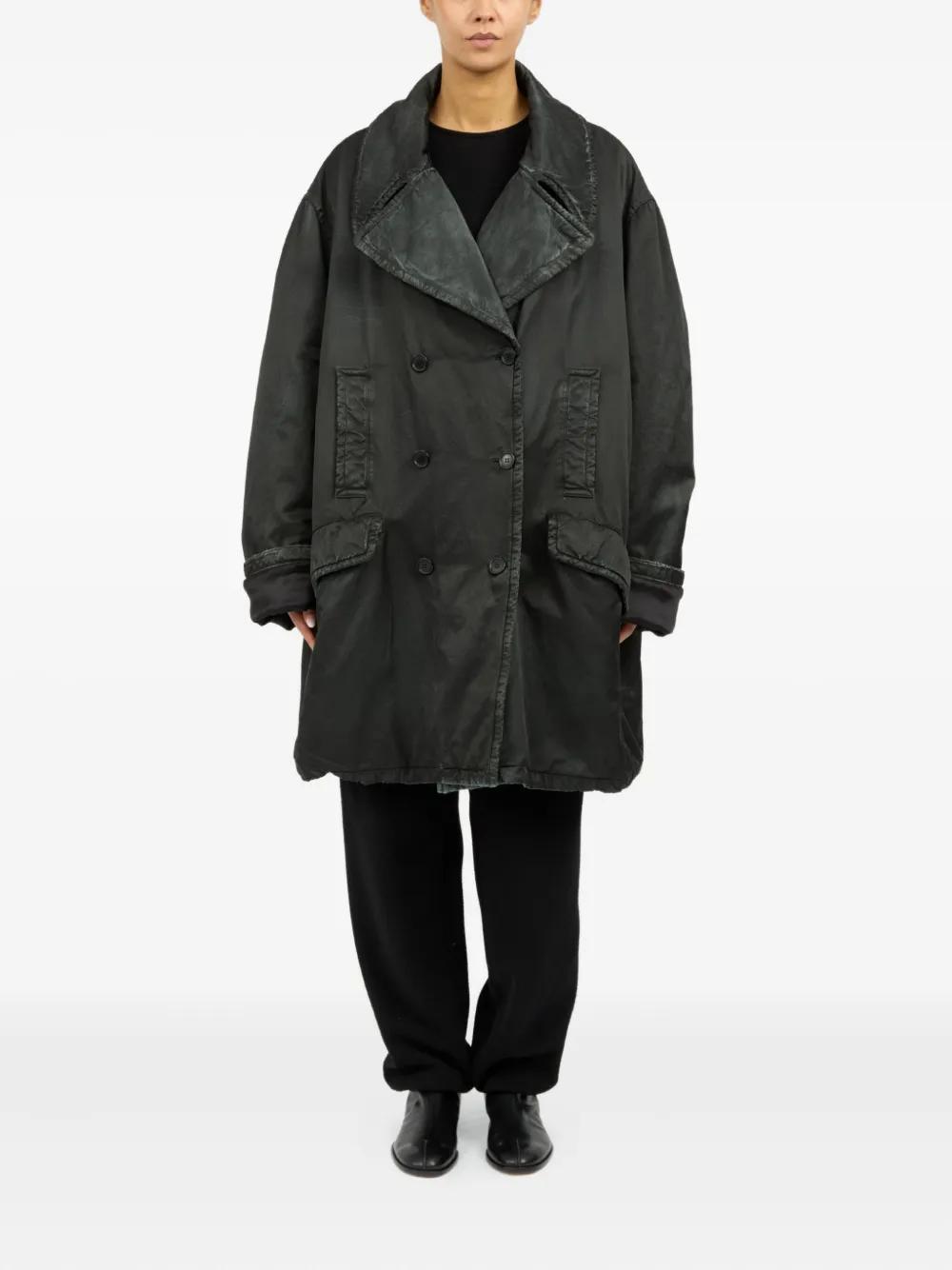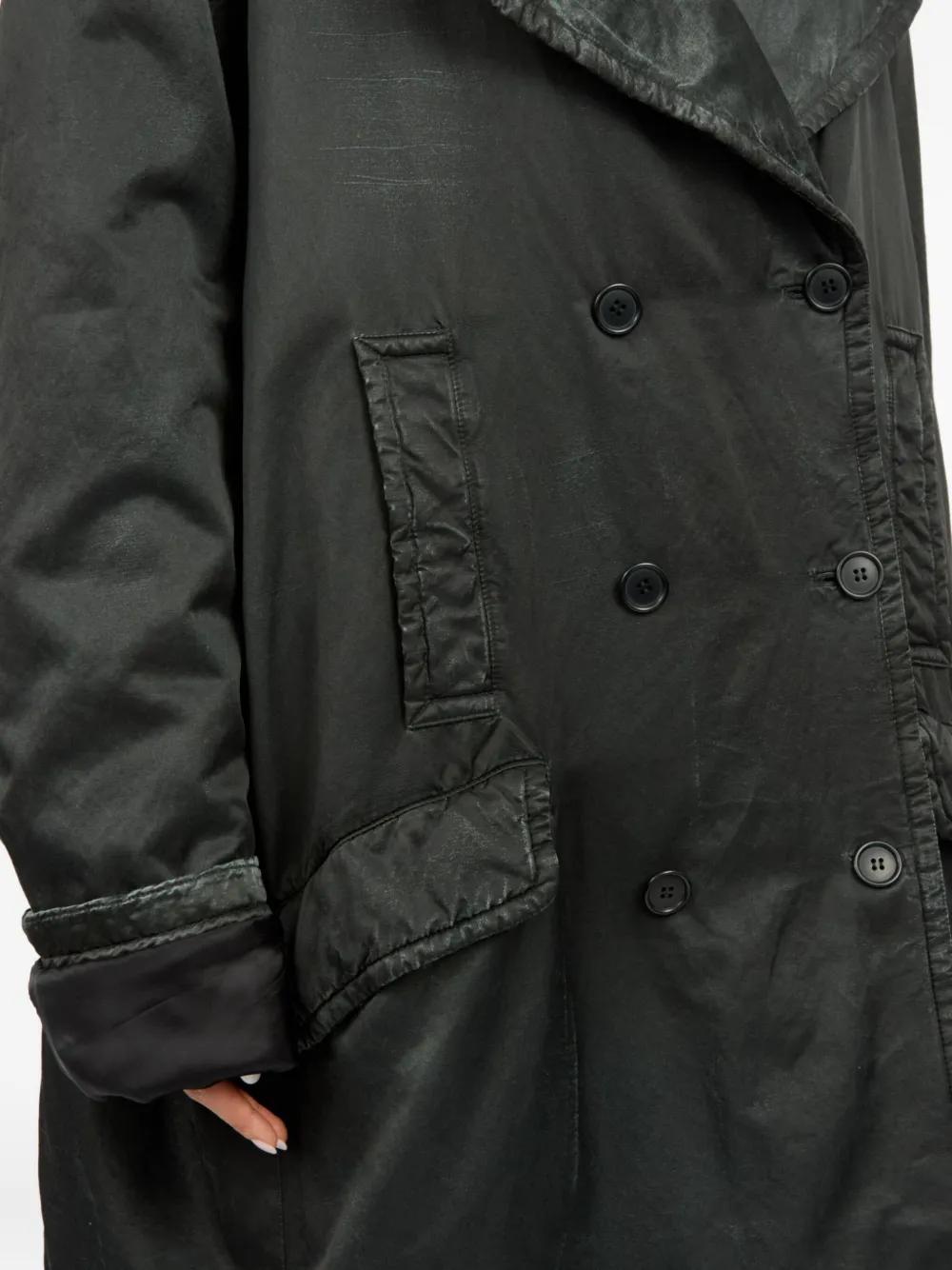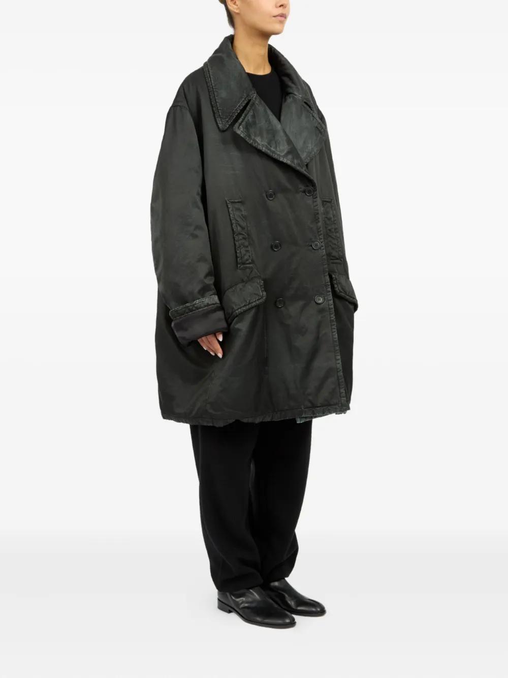 black double-breasted design wide notched lapels side pockets relaxed shoulders
