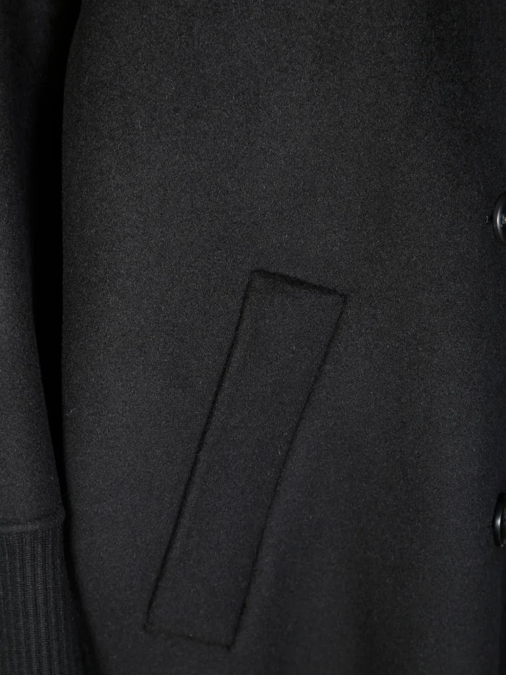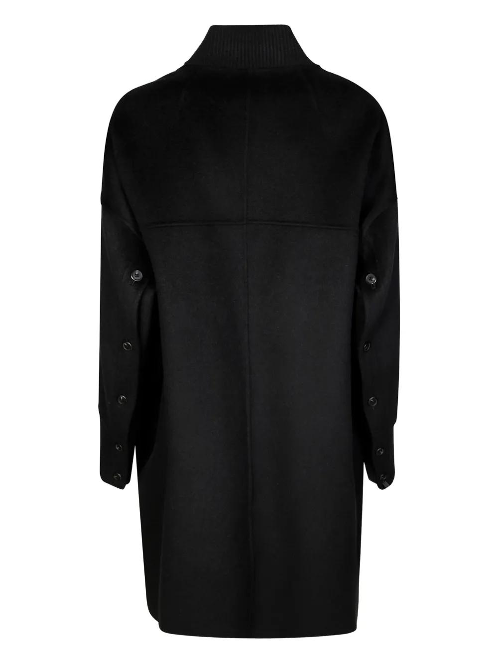 black ribbed-cuffs buttons-fastening side welt pockets buttoned sleeves high neck