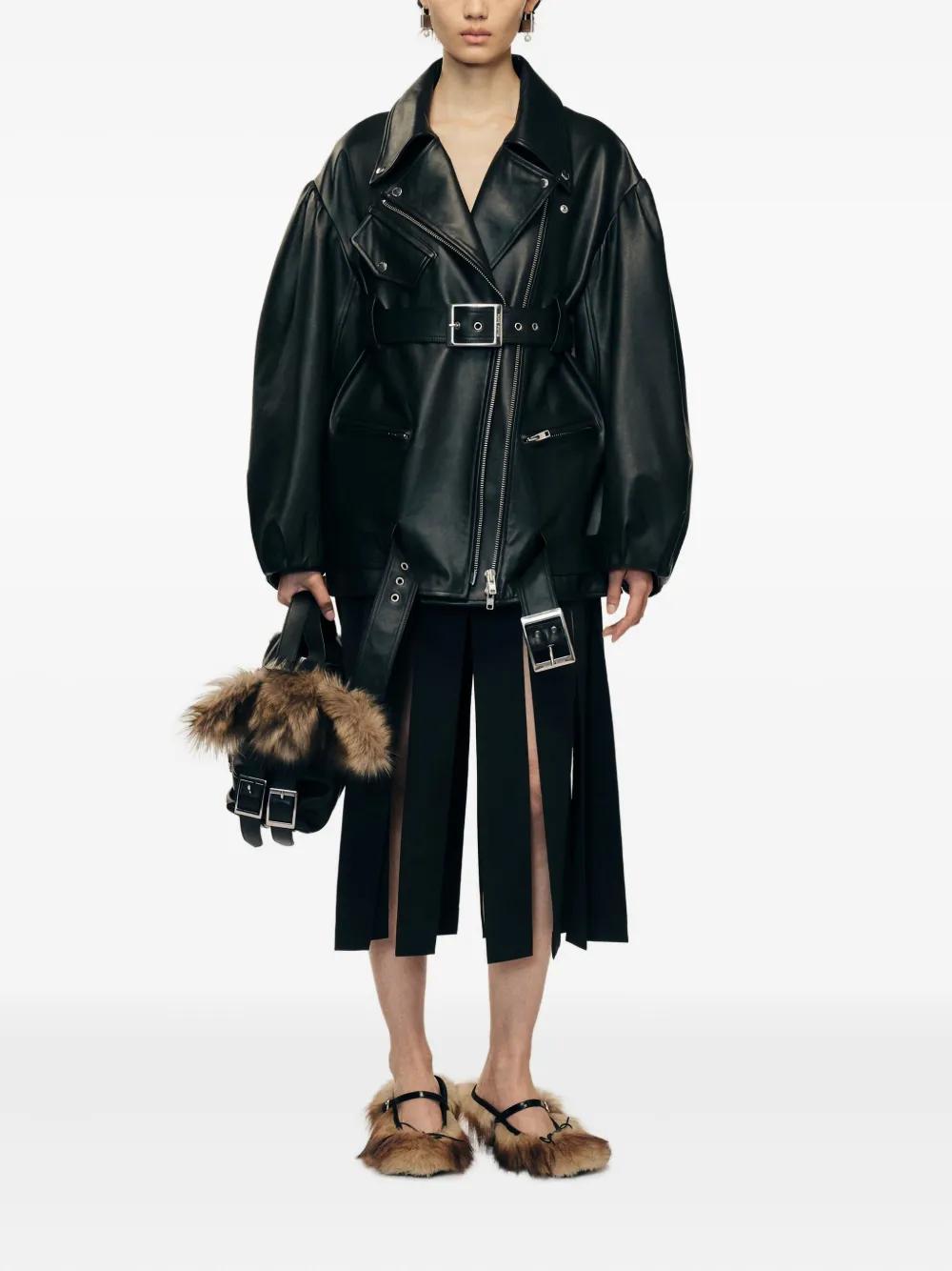 black leather belt silver-tone hardware zip fastening buckle detail notched lapels
