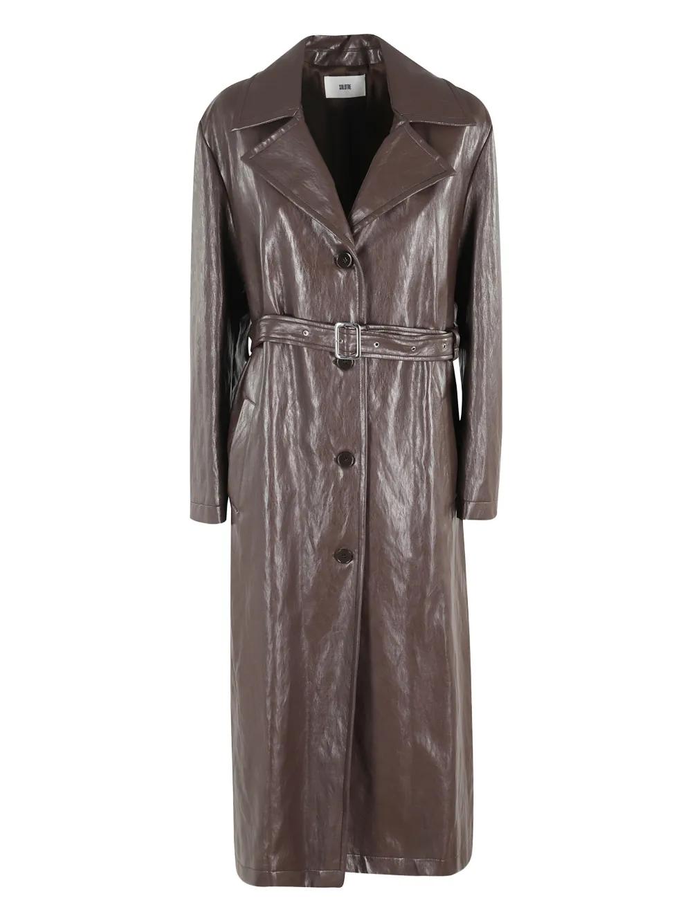 jet black calf leather notched lapels concealed front fastening long sleeves two side flap pockets rear slit straight hem MISBHV does not include brand tags on hats, jewellery and bags from their SS21 collection to ensure your piece arrives in perfect condition.