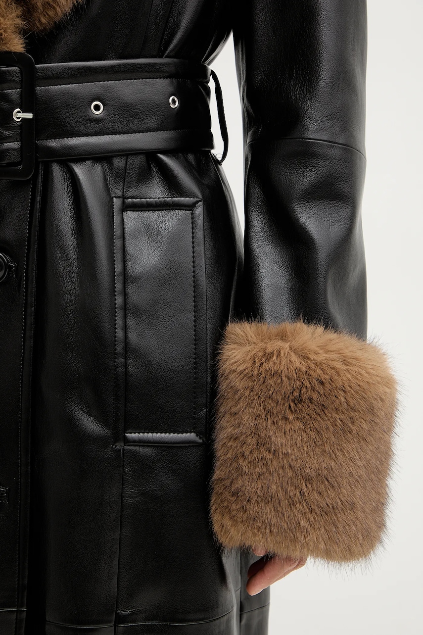 - Prosty, nie blokujący ruchów fason. - Dodatkowa warstwa materiału w postaci podszewki. - Zaokrąglone klapy. - Jednorzędowe zapięcie na guziki. - W talii pasek, który modeluje sylwetkę i dodatkowo podkreśla talię. - W ramiona wszyte poduszki. - Długie, proste rękawy. - Dwie wsuwane kieszenie boczne. - Dodatkowa kieszeń wewnętrzna pozwala na bezpieczne przechowywanie drobiazgów. - Z tyłu rozcięcie, które zapewnia swobodę podczas poruszania się oraz lepsze układanie się materiału. - Model ze wstawkami ze sztucznego futerka. - Długość rękawa: 65 cm. - Długość: 132 cm. - Szerokość pod pachami: 50 cm. - Szerokość w ramionach: 45 cm. - Wymiary podane dla rozmiaru: 36.