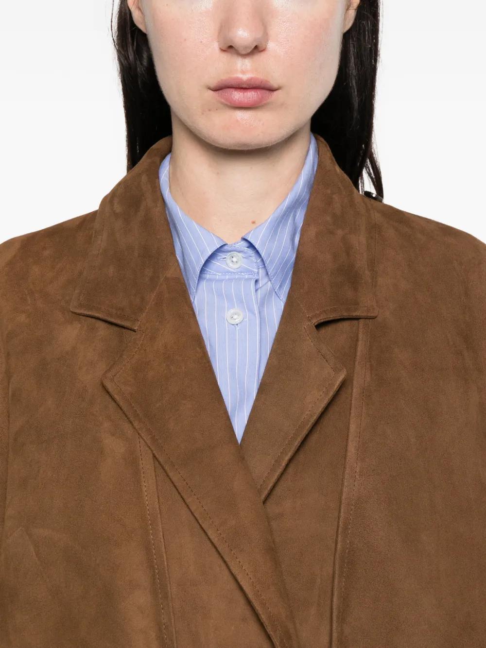 light brown cashmere notched lapels belted waist patch pockets