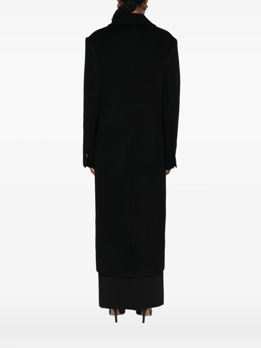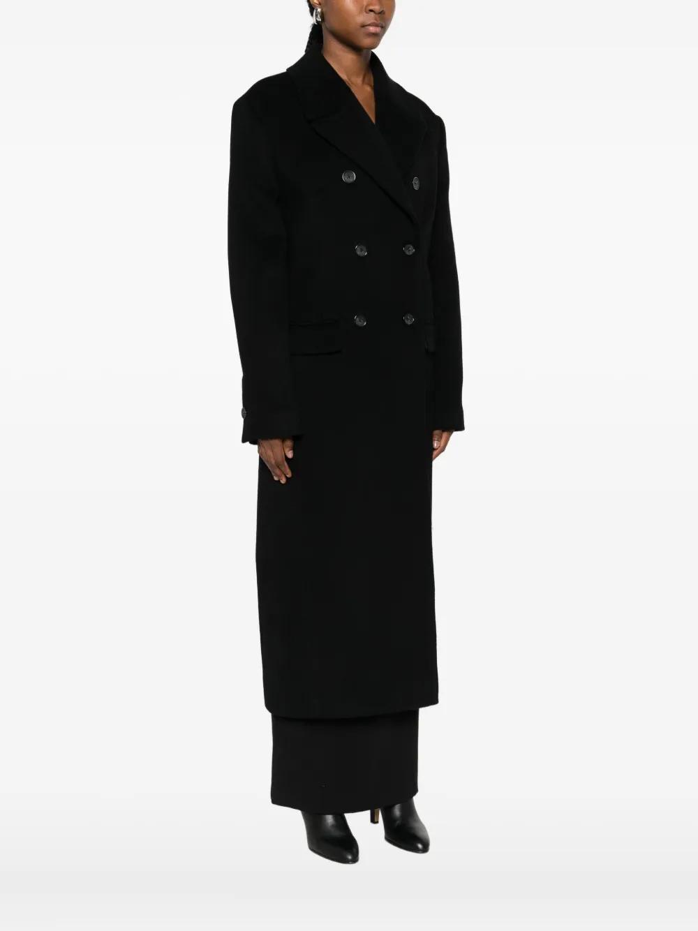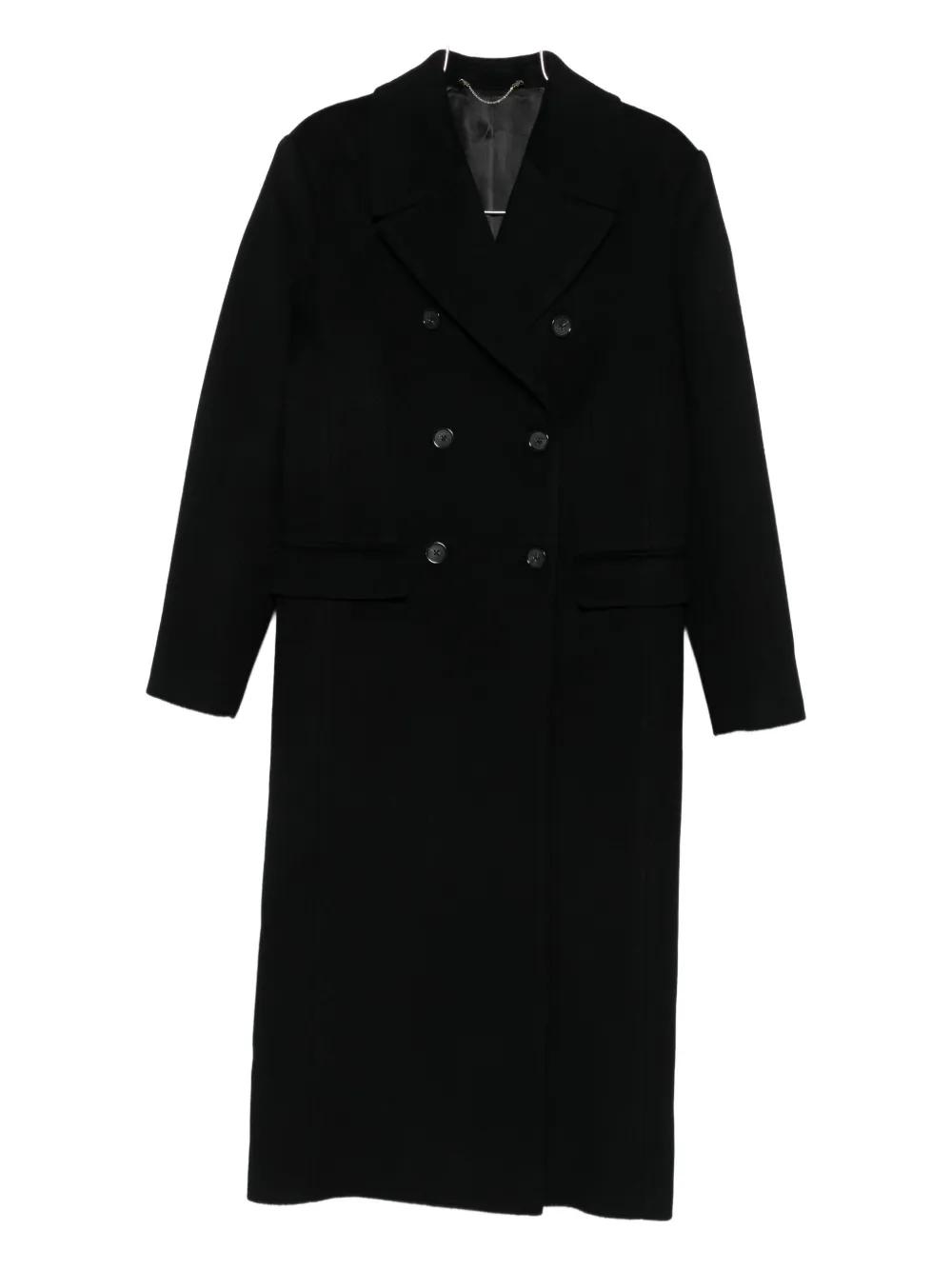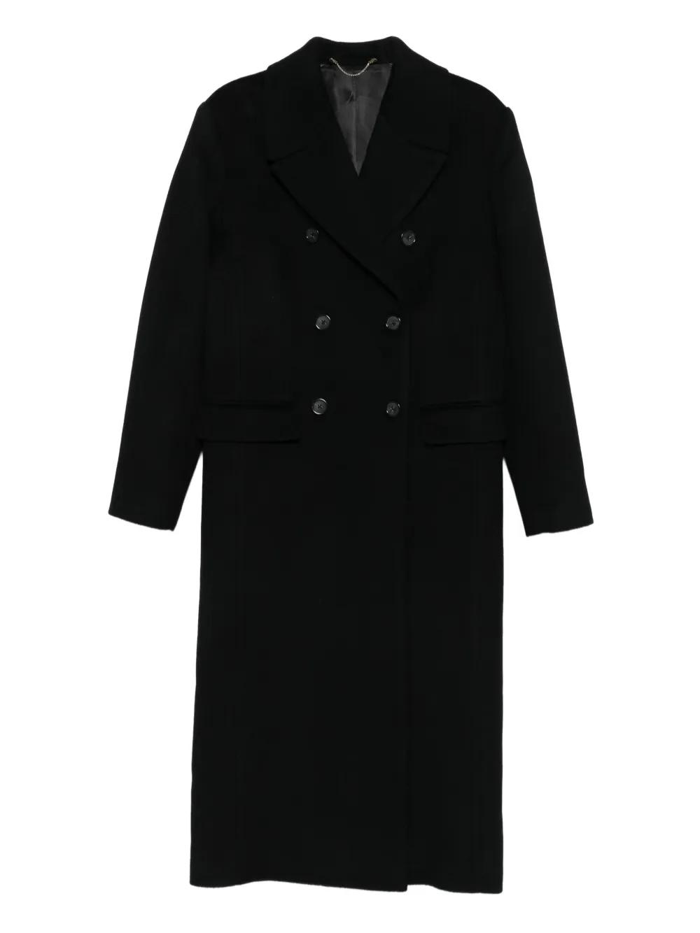 black double-breasted button fastening notched lapels front flap pockets long sleeves
